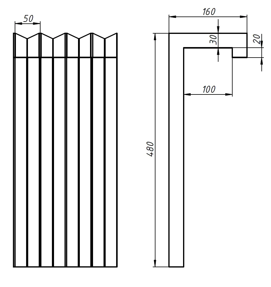 480x160x50x20mm: Total length 1500mm; compression length-120mm