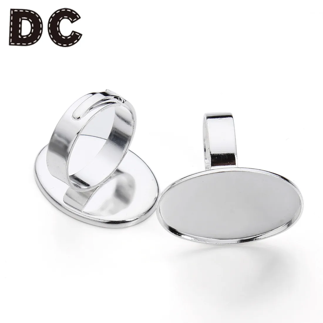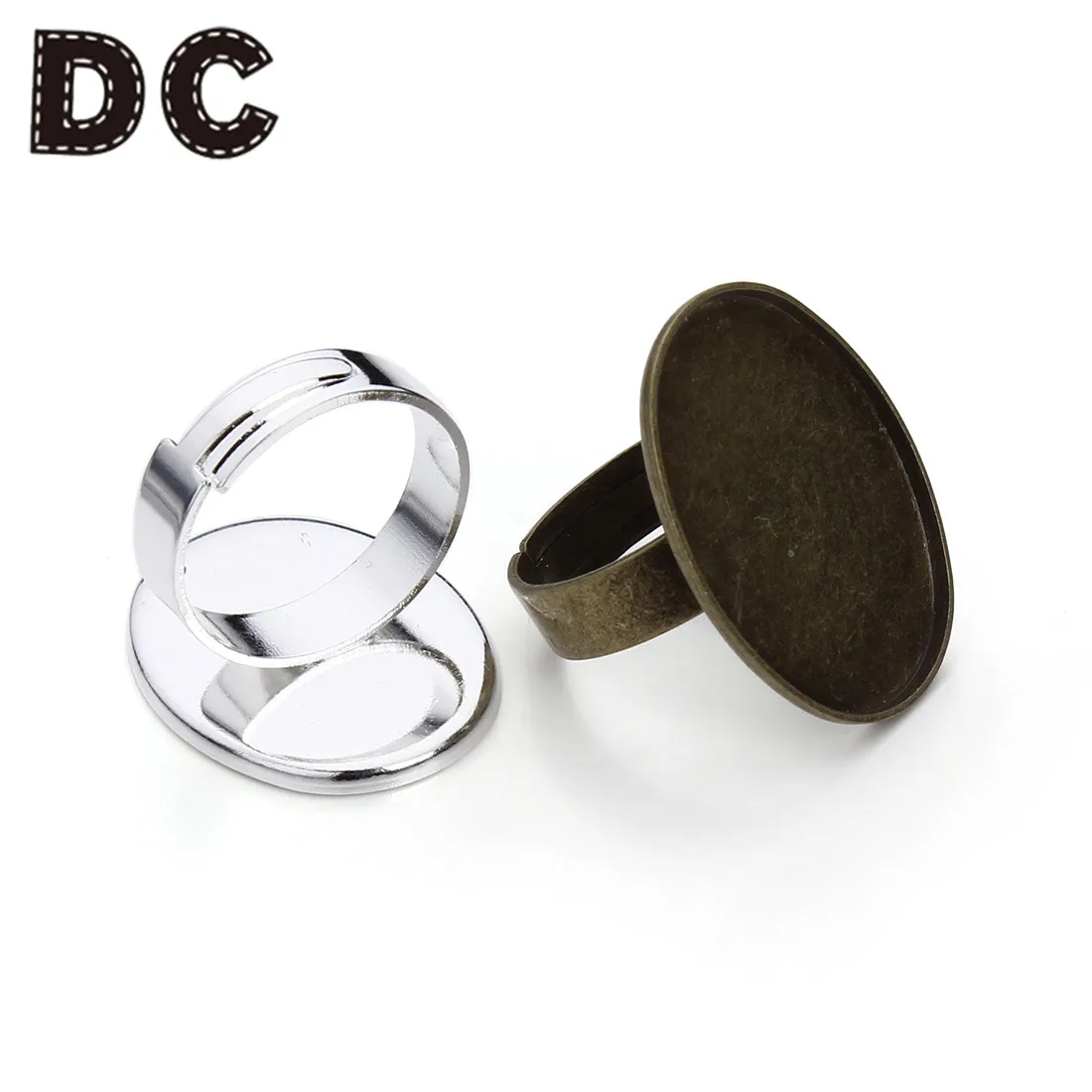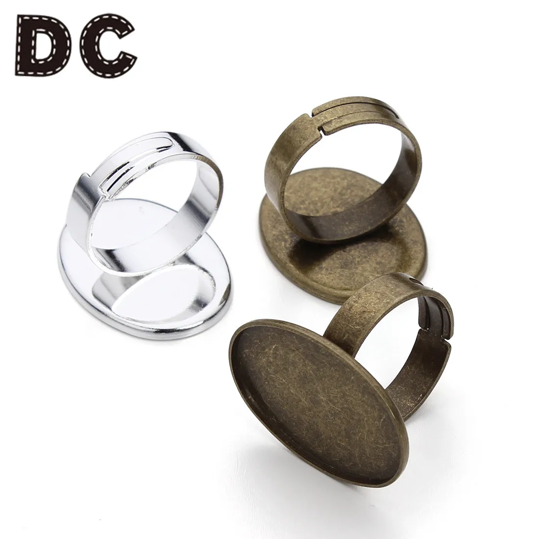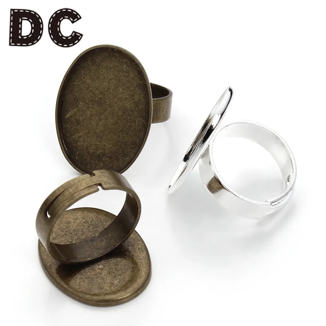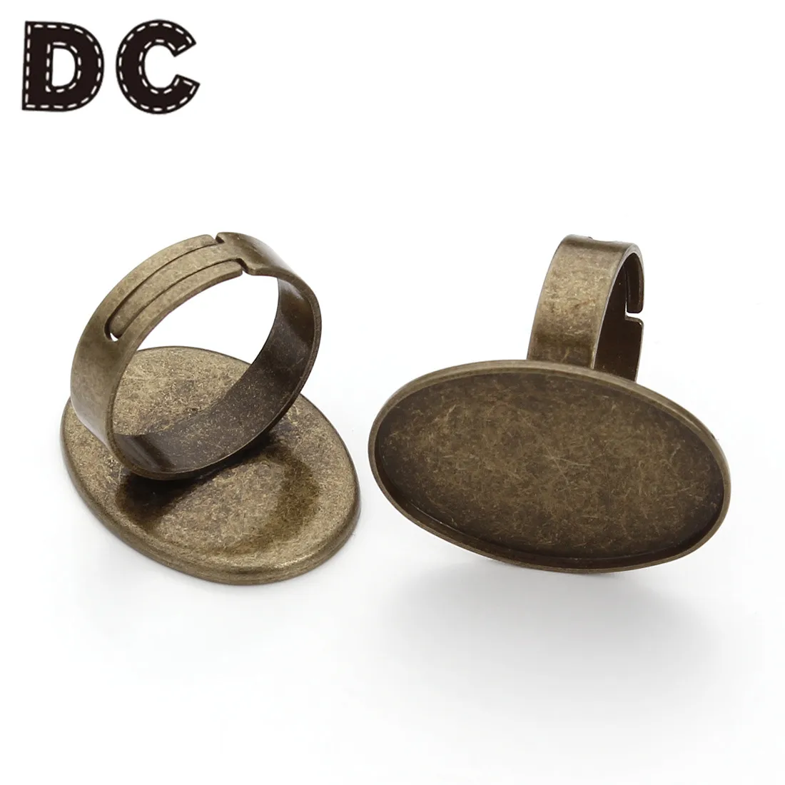 DC 5 шт./лот Adujstable пустое кольцо, установленное в 18*25 мм овальный кабошон, сделай сам, ручная работа, сплав, кольцо, ювелирное изделие, древний зеленый/серебристый