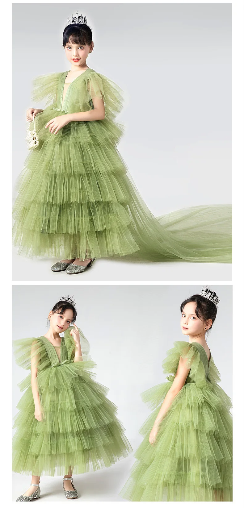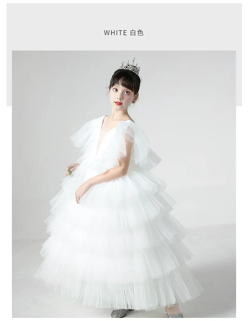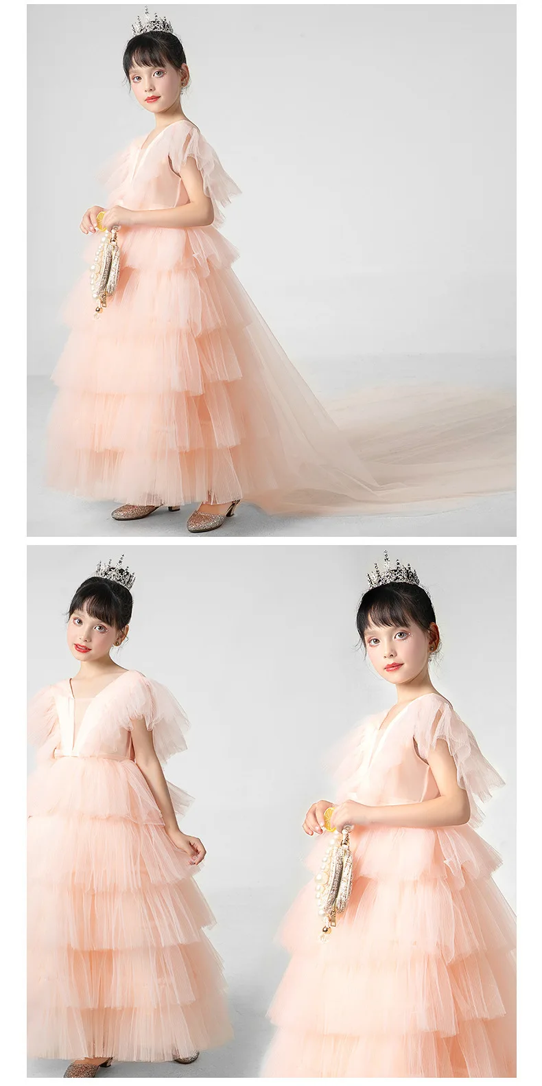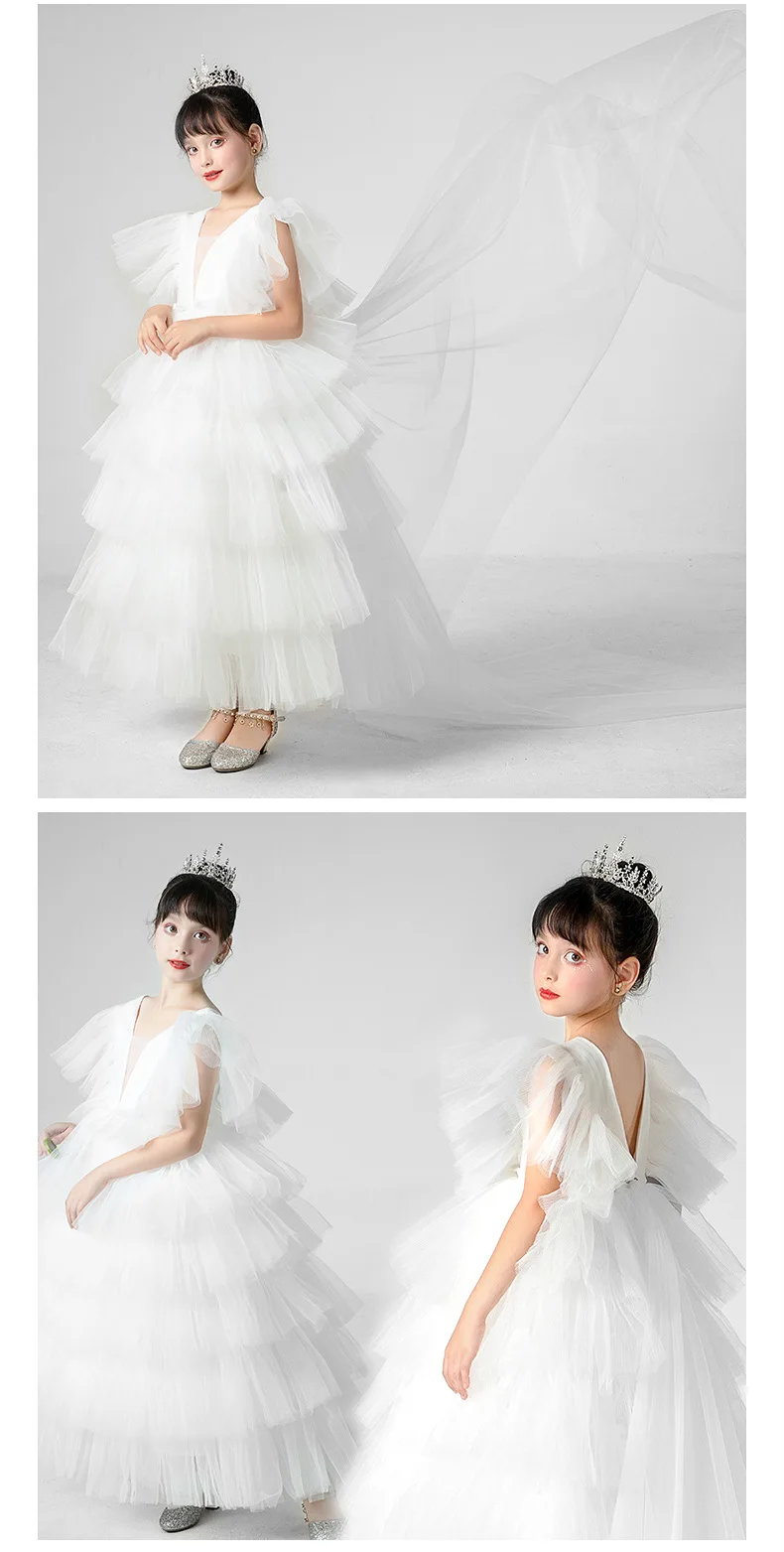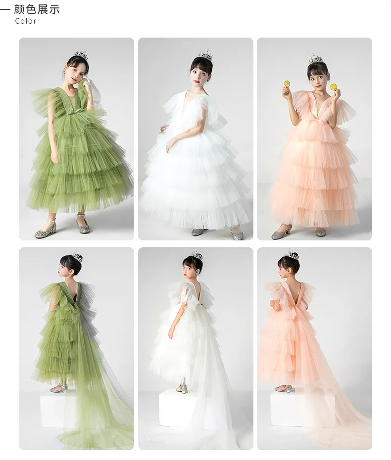 Платье принцессы с длинным рукавом для девочек однотонный детский кружевной