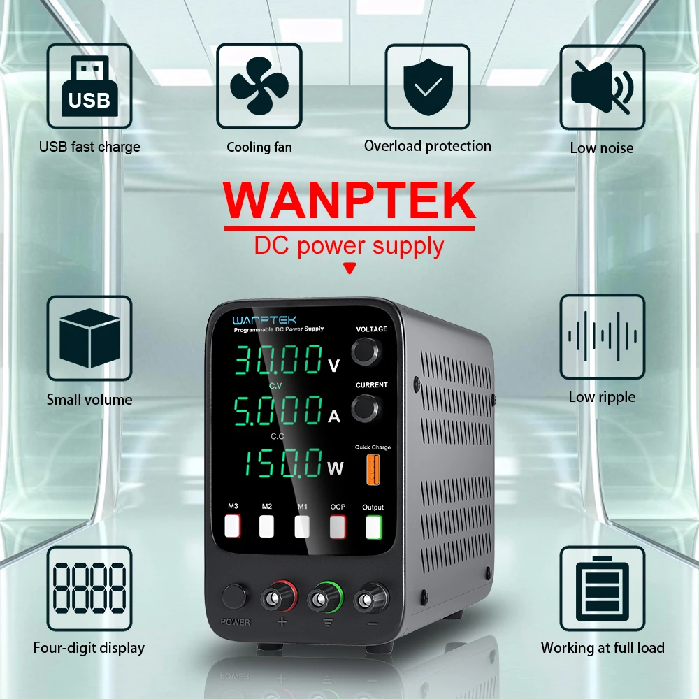 Новая серия продуктов Wanptek. Эта модель представляет собой миниатюрный импульсный источник питания постоянного тока. Выходное напряжение и ток можно контролировать и регулировать с помощью переменных резисторов соответственно, поэтому он обеспечивает больше удобства и точности в регулировке напряжения и тока. Панель также обеспечивает Высокоточный цифровой дисплей с двумя/тремя окнами напряжения, тока и мощности, чтобы пользователи могли интуитивно видеть состояние использования тока и различные параметры машины