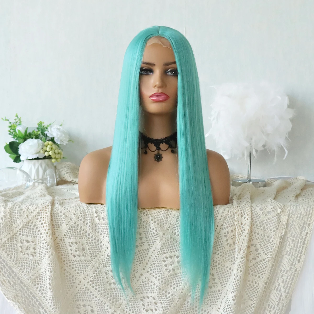 Синий цвет 22 дюйма, прямые, мягкие и натуральные волосы с волосами ребенка. 100% Термостойкие волосы из синтетического волокна (до 120 градусов