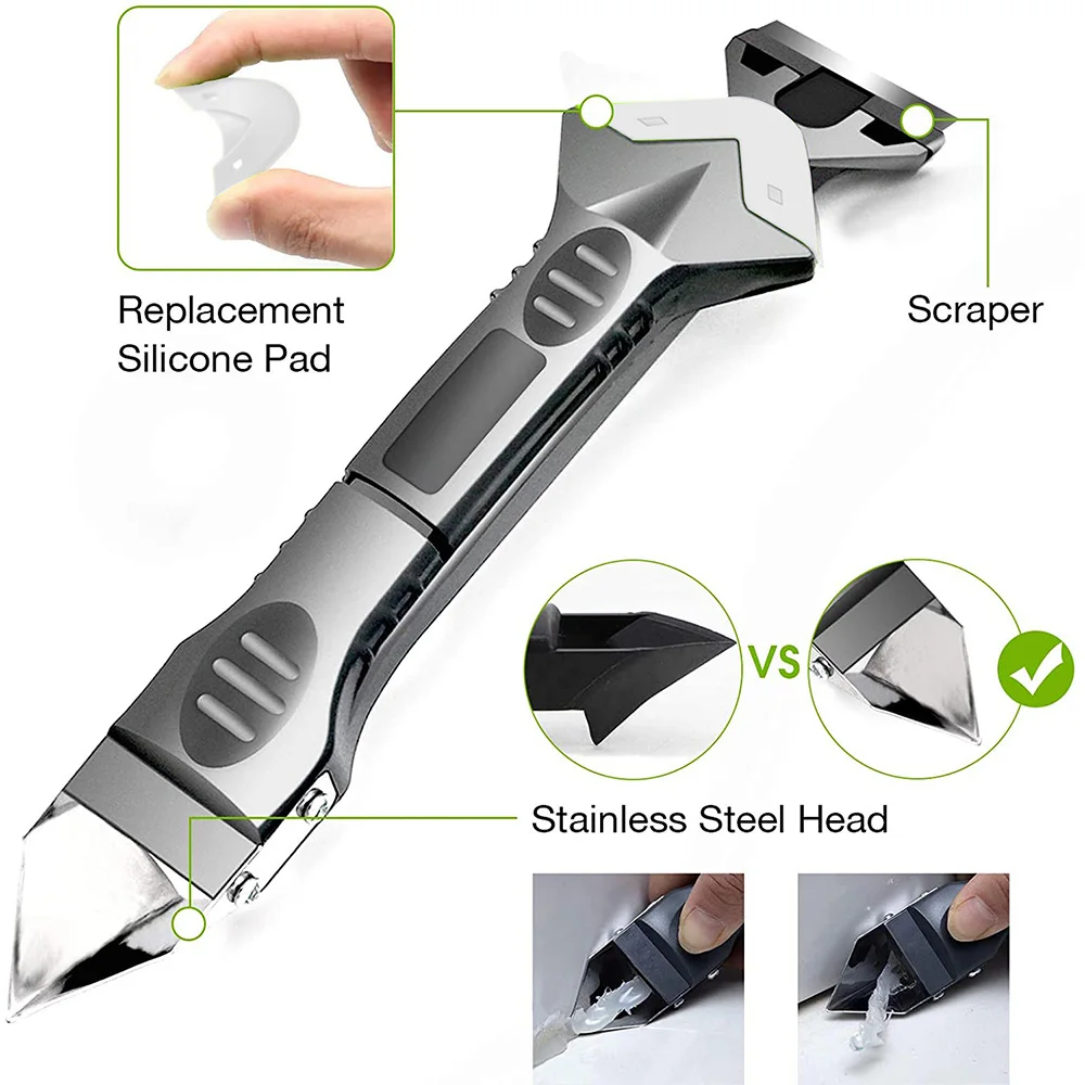 3 в 1, силиконовые инструменты для нарезки, нержавеющая, герметизирующая отделка, скребок для решетки, 5 силиконовых подушечек, отлично подходит для кухни, ванной комнаты, соединение радиатора