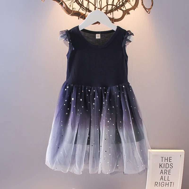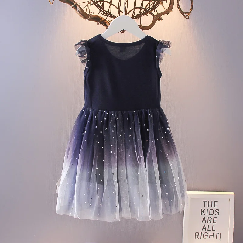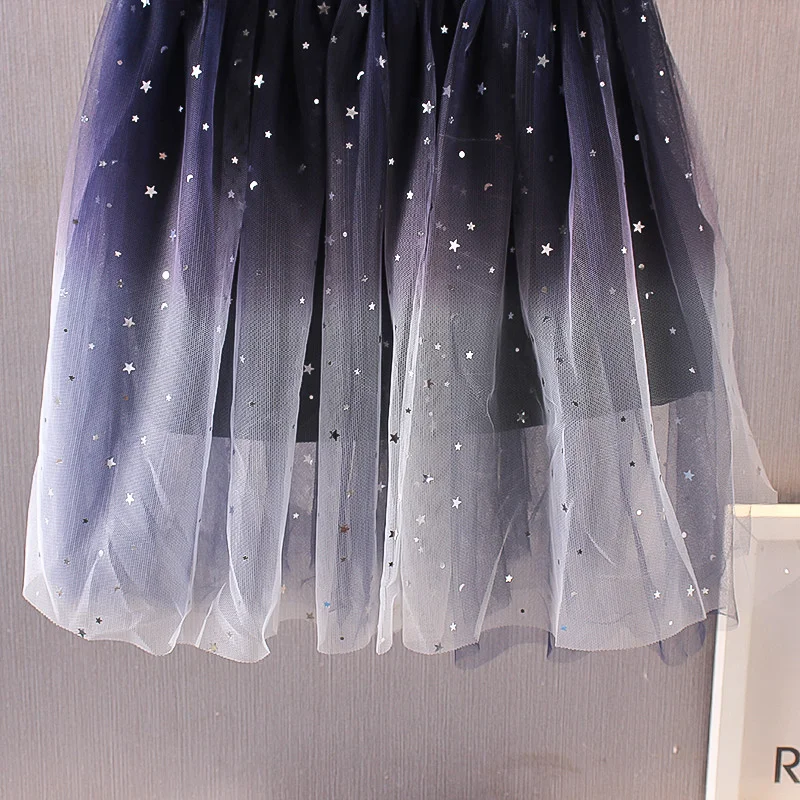 Новое поступление; Летние платья для девочек; Модное платье звездного неба; Сетчатое пышное платье принцессы для девочек; Детская одежда