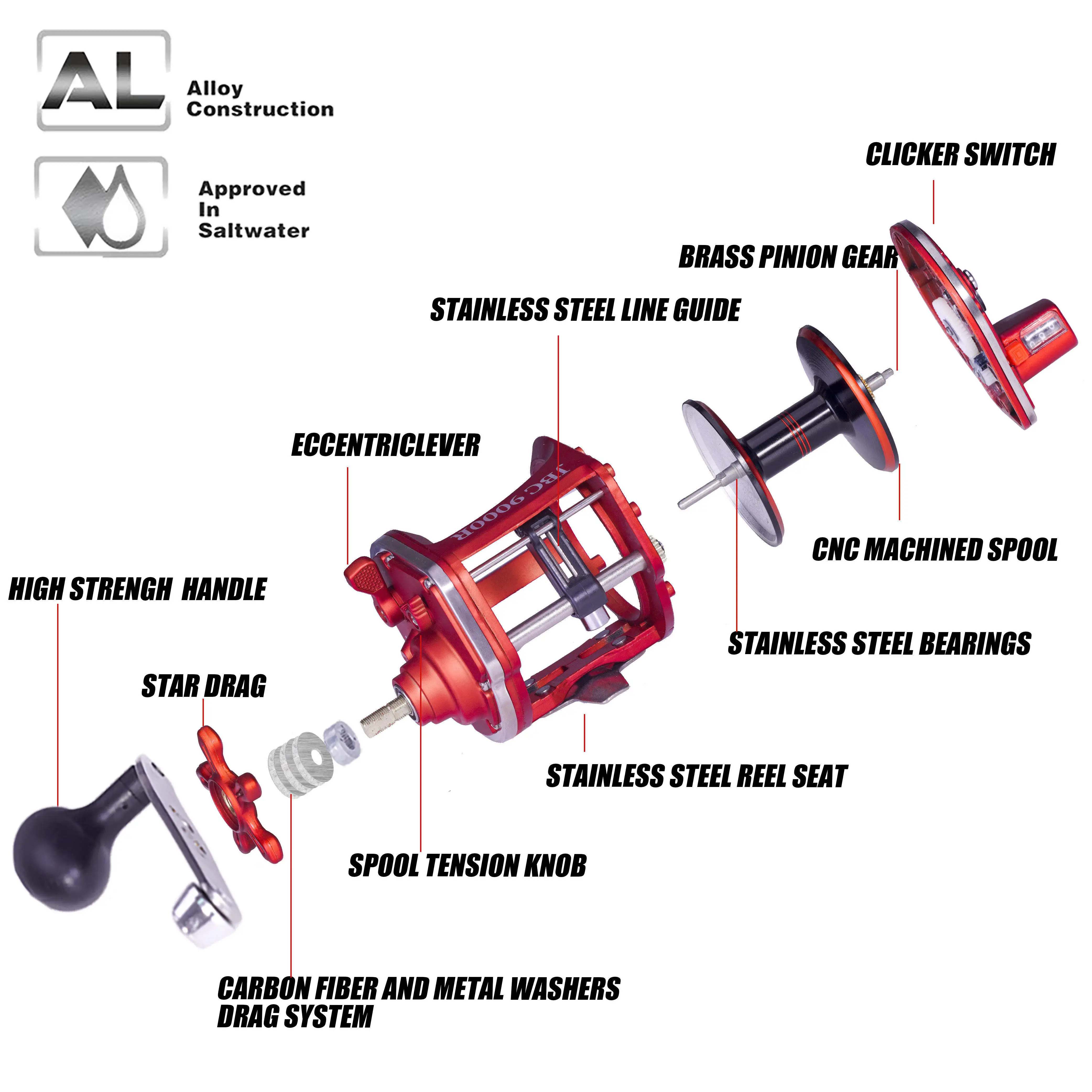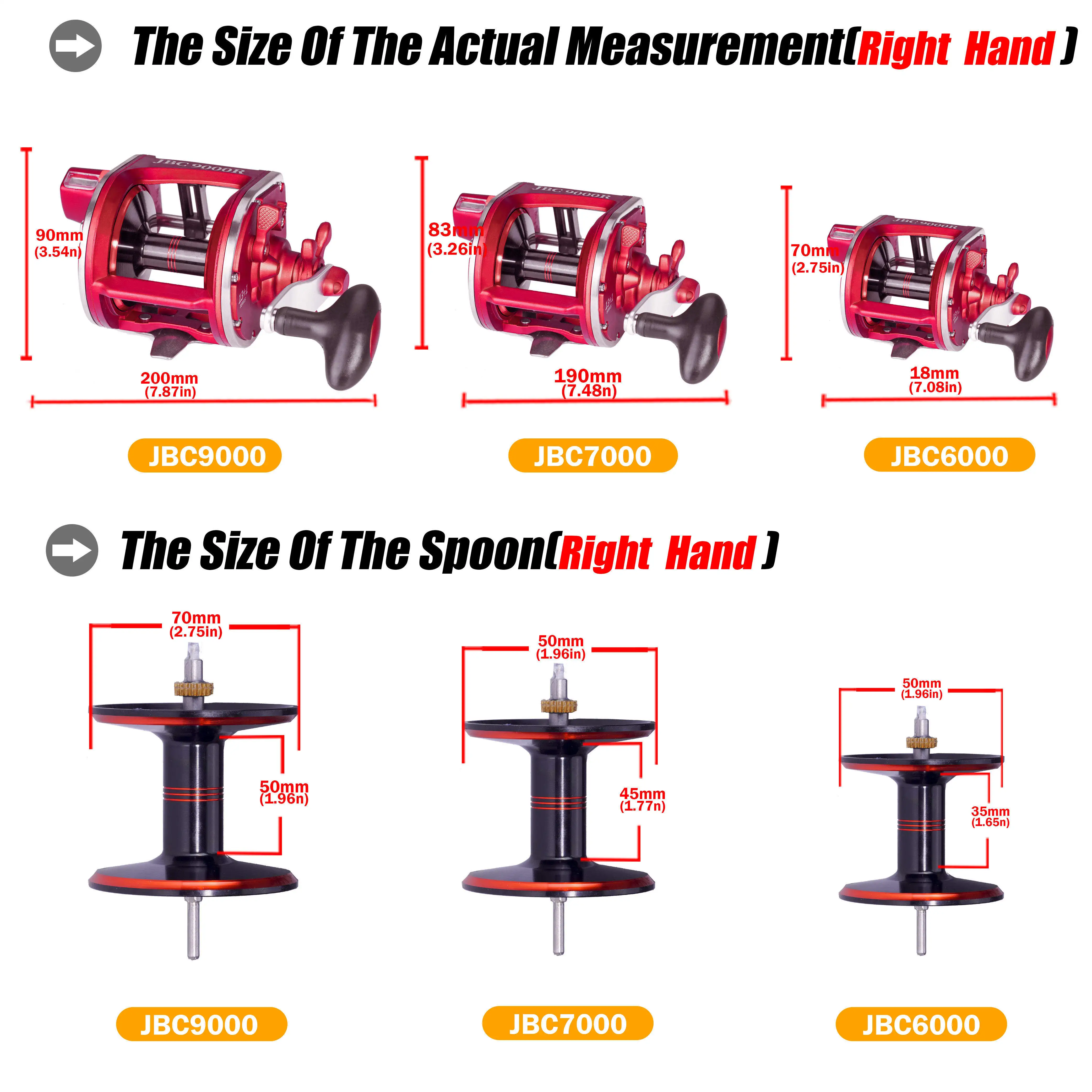 Правый красный JBC7000 | Вес: 465g | Шестерни передаточное число: 4,3: 1 | Подшипника: 13 + 1 | Максимальная сила натяжения: 22 кг | Линия Ёмкость (мм-М): 0,40/420 0,45/330 0,50/270