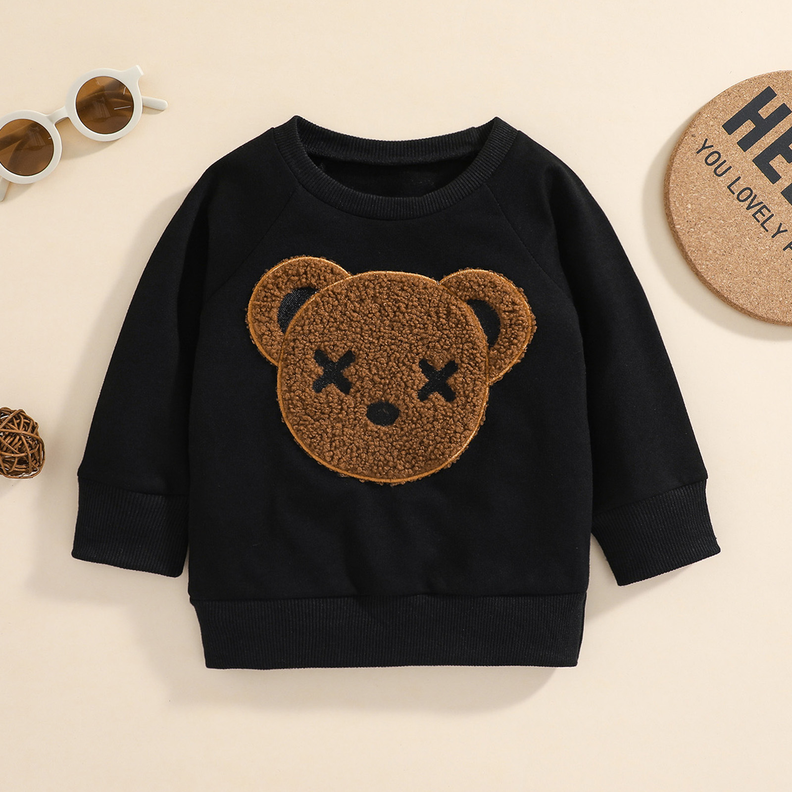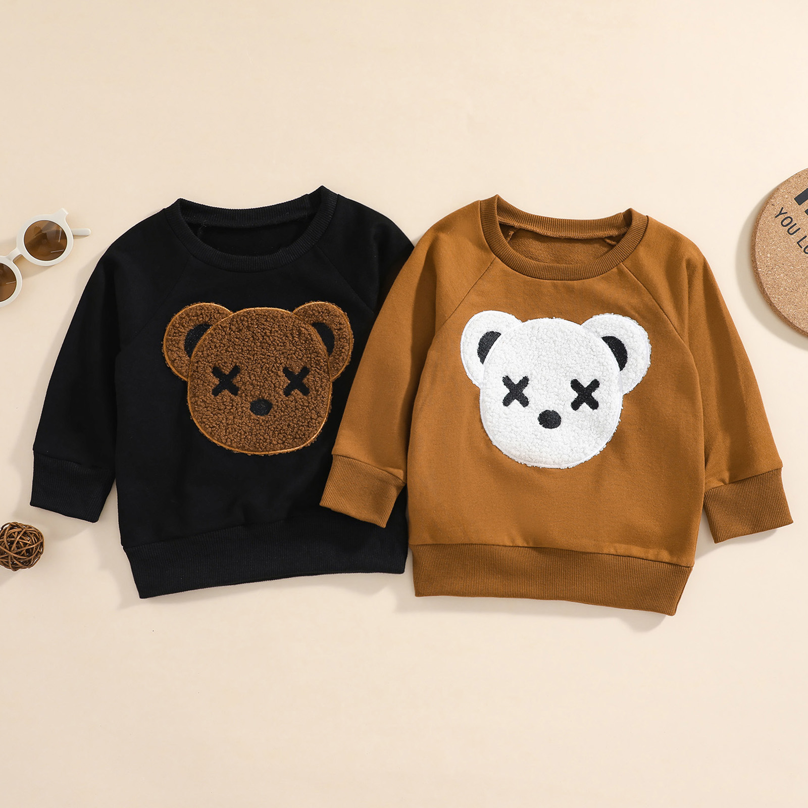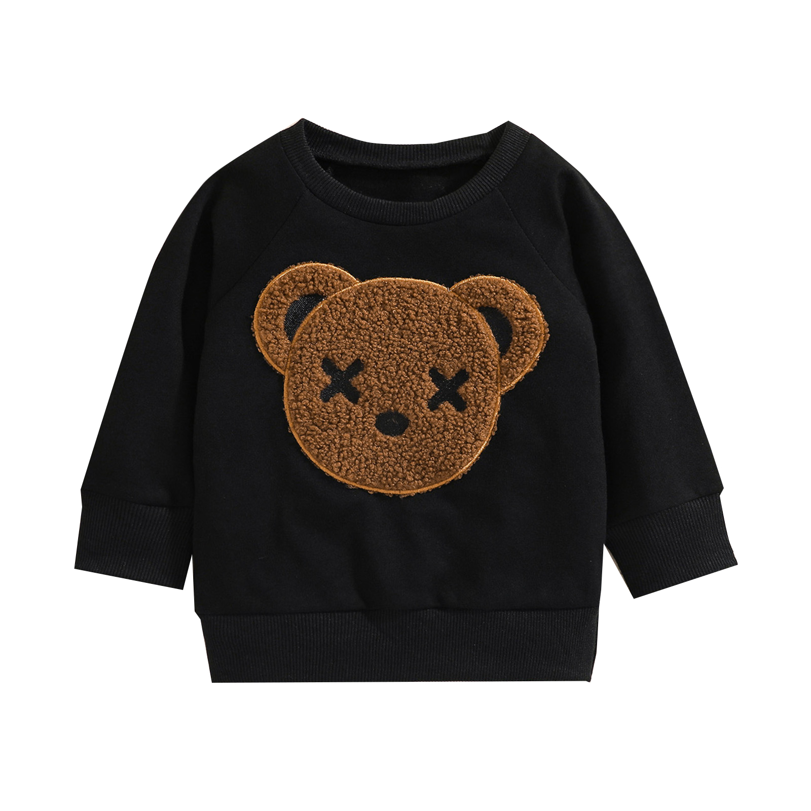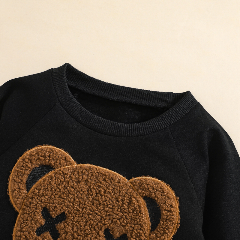 Children's Sweater Bear Embroidery Design Long-sleeved Round Neck Warm Breathable Tops Sweater