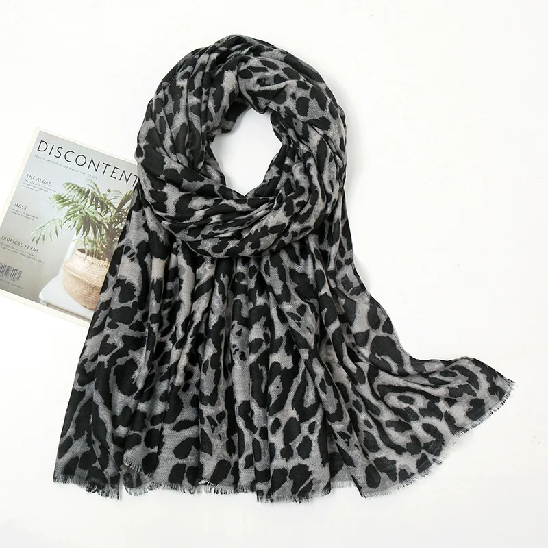 Модный женский осенний шарф из вискозы, однотонный зеленый Леопардовый шарф с бахромой, длинный Палантин из пашмины, мягкая мусульманская шаль, 180*90 см