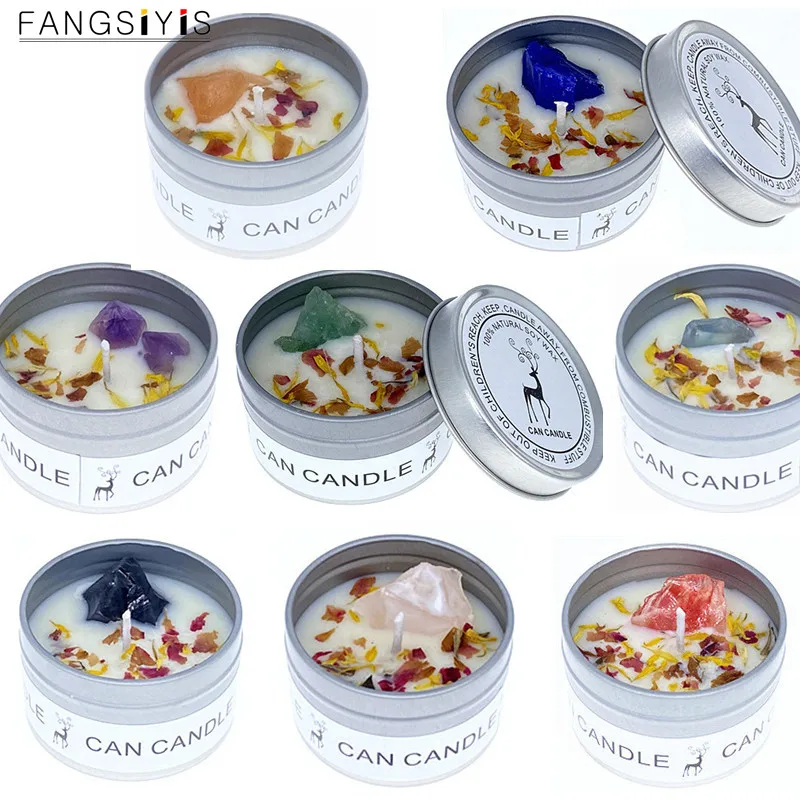 Ароматерапия свечи Кристалл соль камень золото/серебро коробка высушенный цветок ароматический соевый воск бездымного свеча украшение дома отеля