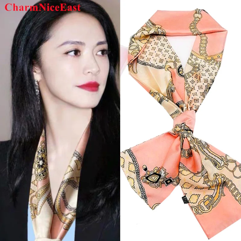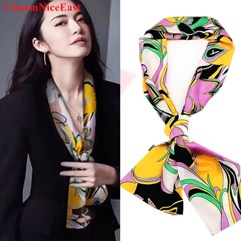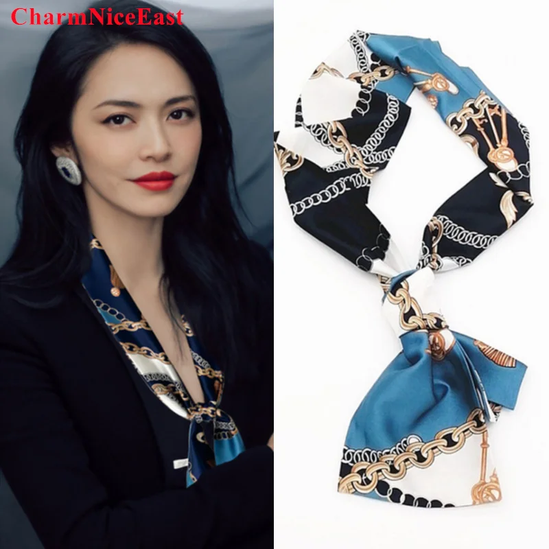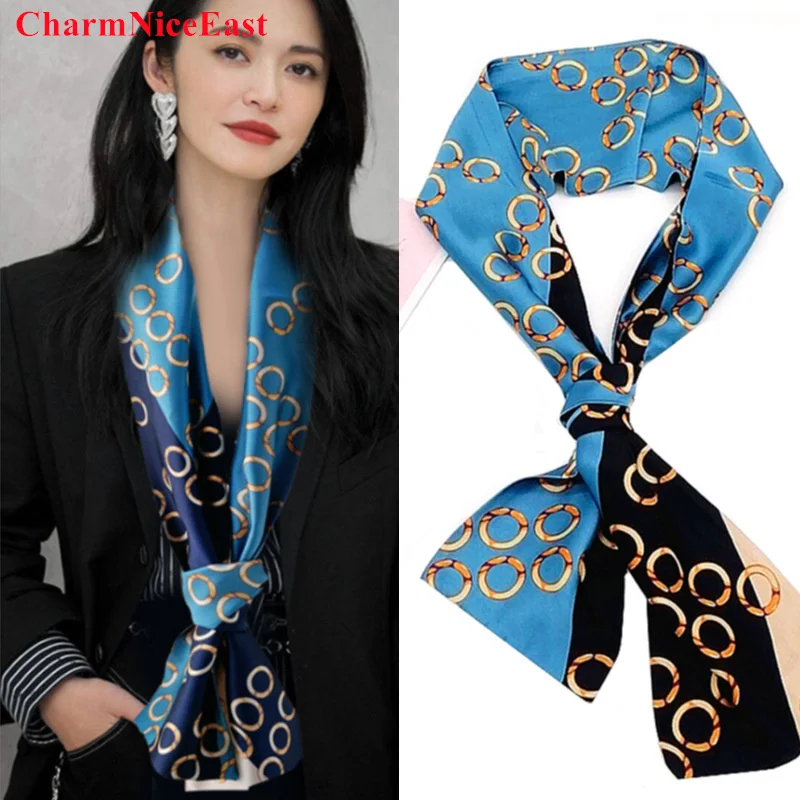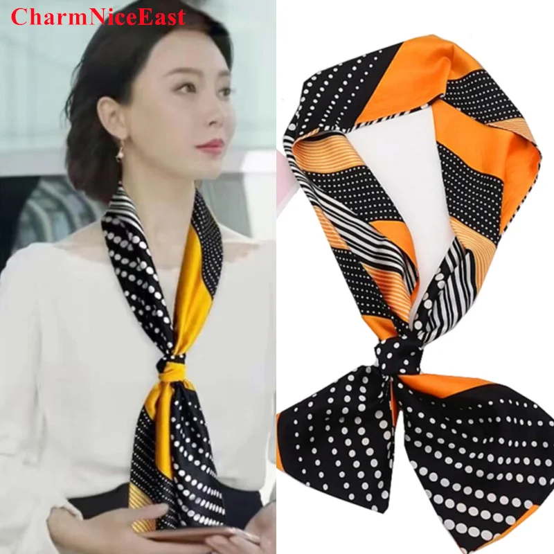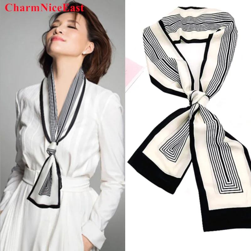Лидер продаж, бренд Luxuary, весенние шарфы Koreaon, узкий длинный атласный шарф в полоску для женщин, элегантные женские шарфы, женский шарф с воротником