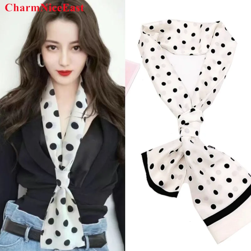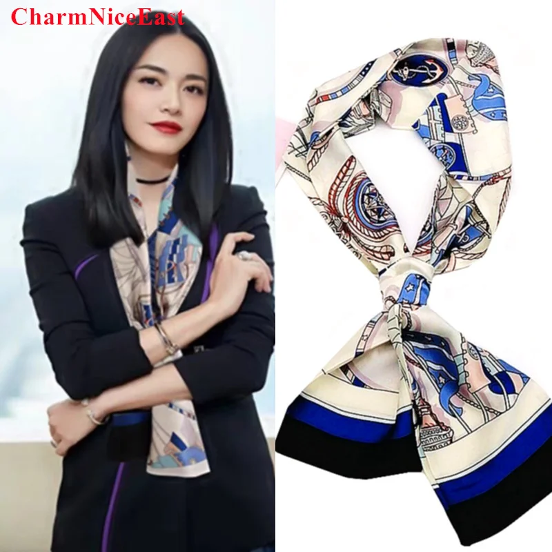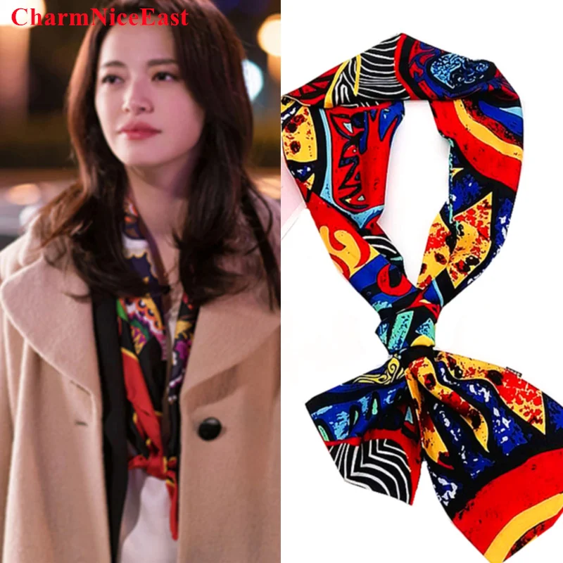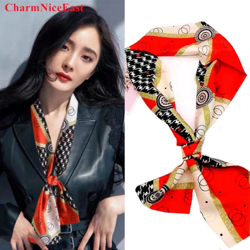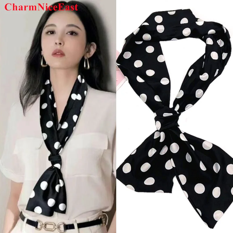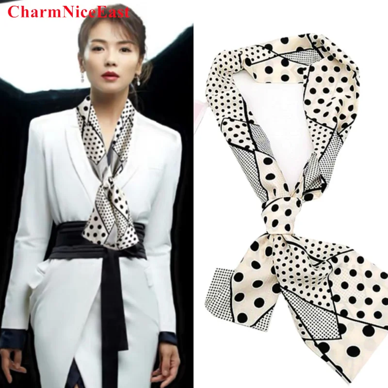 Лидер продаж, бренд Luxuary, весенние шарфы Koreaon, узкий длинный атласный шарф в полоску для женщин, элегантные женские шарфы, женский шарф с воротником