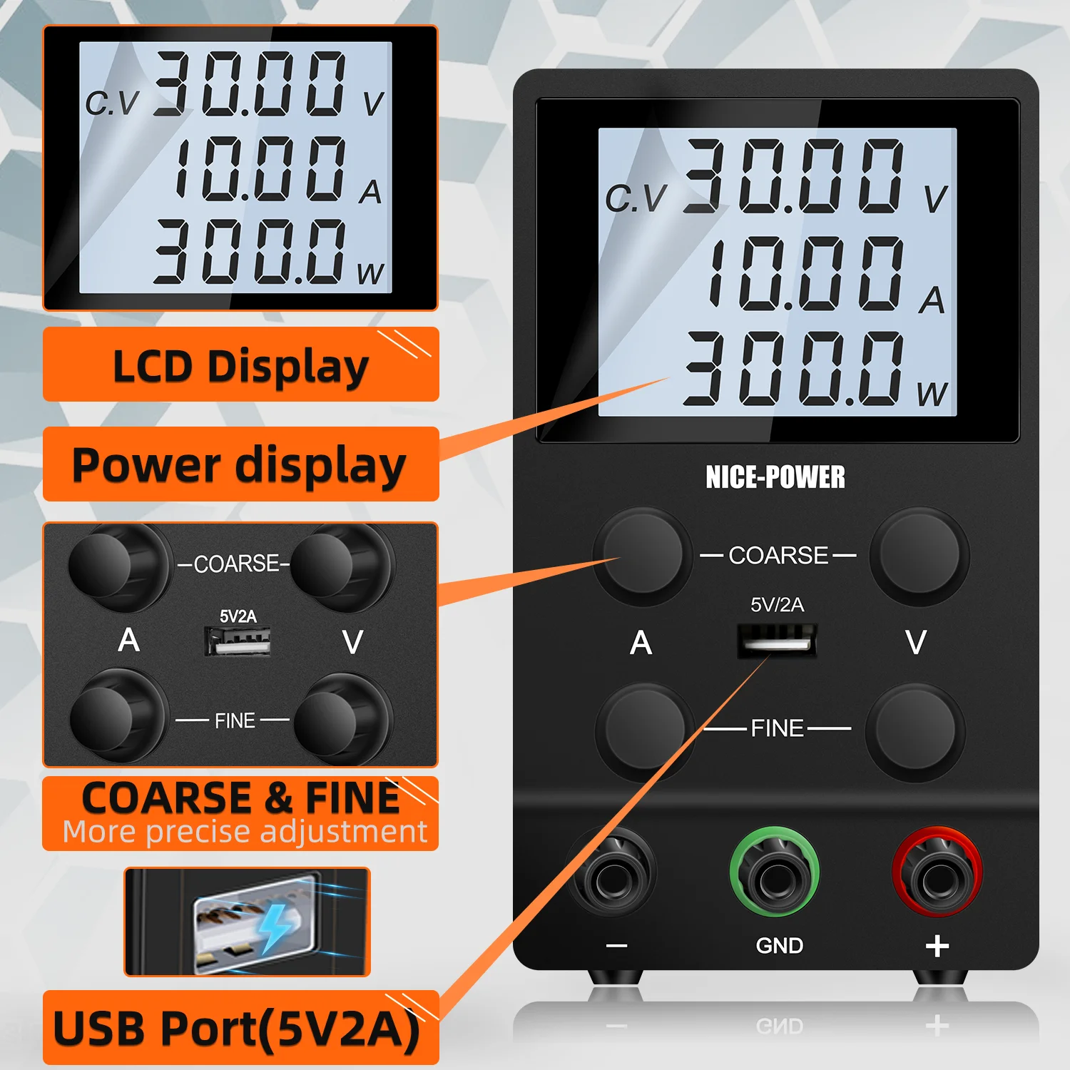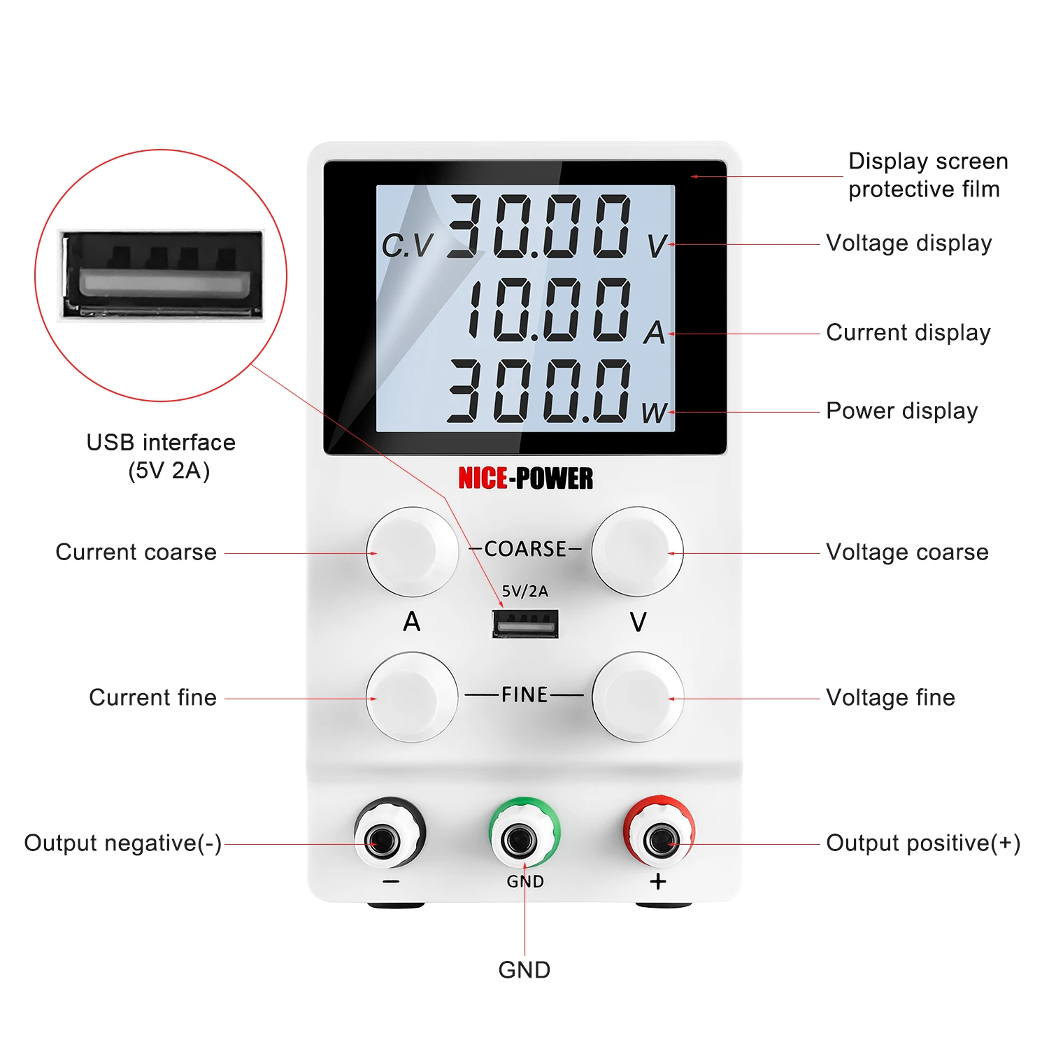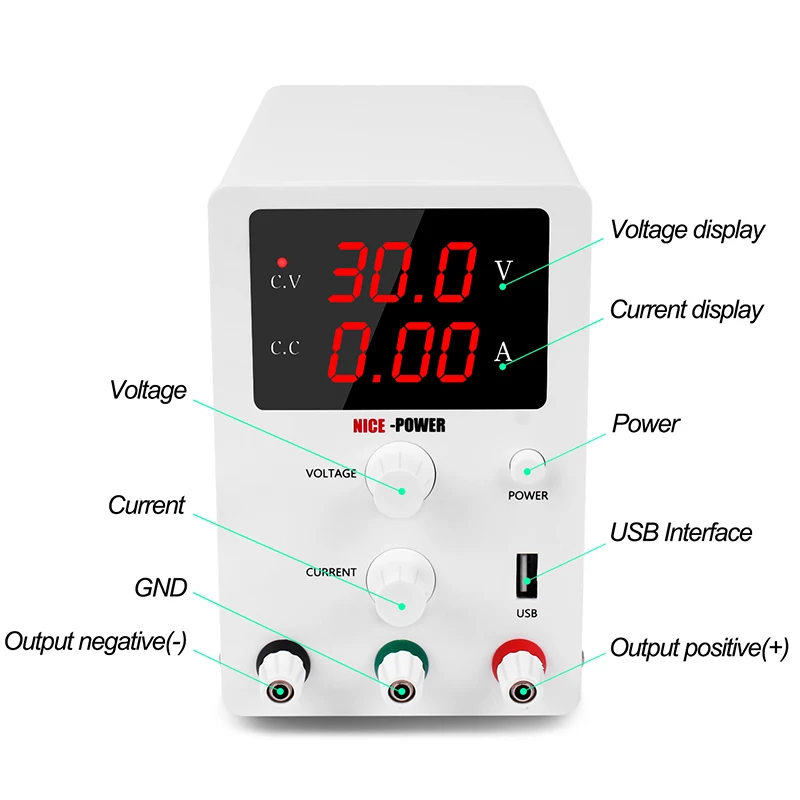 Источник питания использует передовую технологию ШИМ, напряжение, ток можно непрерывно регулировать от 0 - 30 в/60 в/120 в
