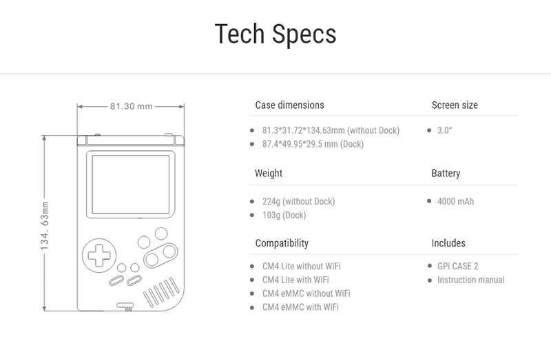 Чехол Retroflag GPi 2 Deluxe Edition с сумкой для переноски док-станции 3,0 ”LCD 4000mAh аккумулятор Rechargeab для Raspberry Pi CM4 Lite/eMMC
