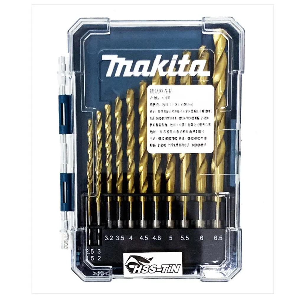 Японская высокоскоростная стальная сверла Makita, перфорационные отверстия, титановое покрытие, домашняя электрическая дрель для сверления Сверл из листового металла, 13 шт. в комплекте