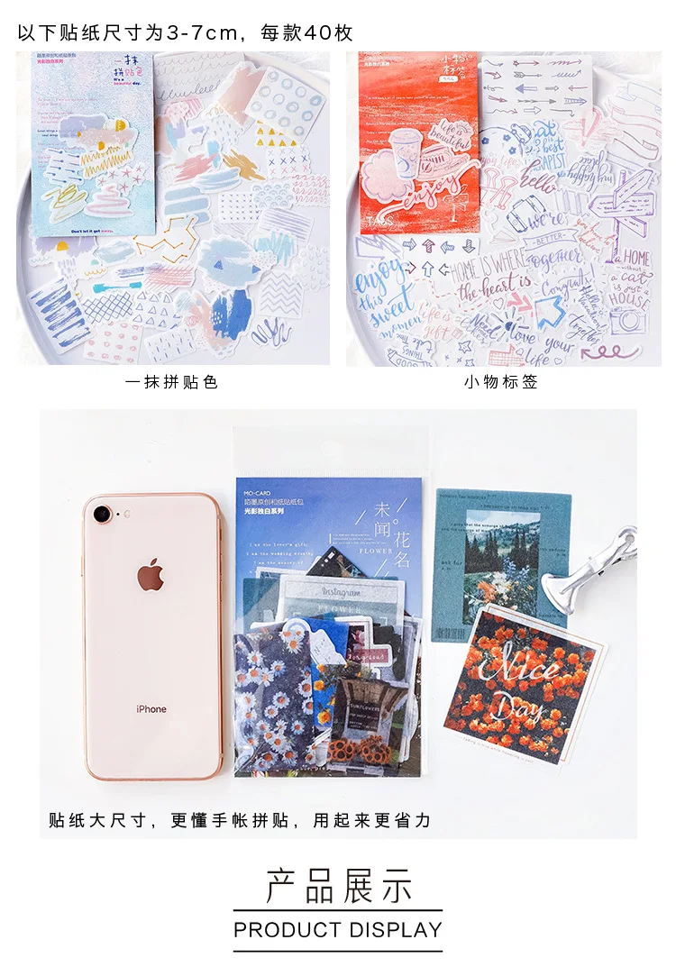 Название продукта: светильник и тени Материал: Васи Количество: 1 сумка = 40 шт. Размер наклейки: 50-70 мм/30-70 мм Посылка: задняя пластина + OPP сумка