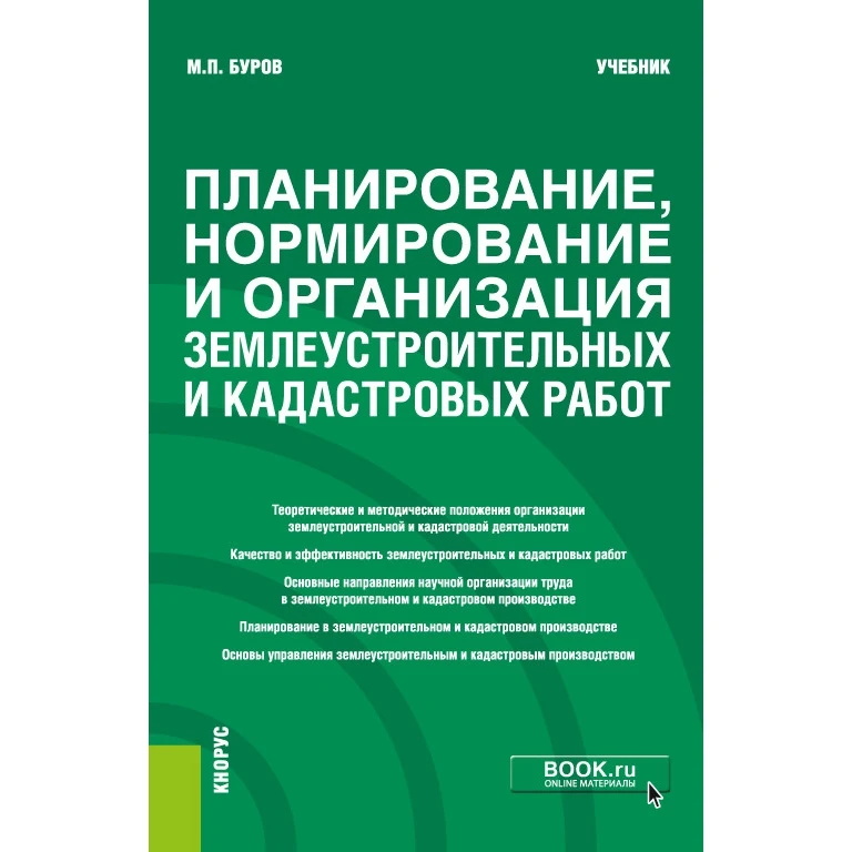 Рассмотрены теоретические положения организации и организационно-экономические особенности землеустроительной и кадастровой деятельности. Большое внимание уделено содержанию, качеству и эффективности землеустроительных и кадастровых работ, современным методам планирования и организации землеустроительного и кадастрового производства. Раскрыты принципы и формы оплаты труда в землеустроительной и кадастровой деятельности и основы управления землеустроительным и кадастровым производством._x000D_