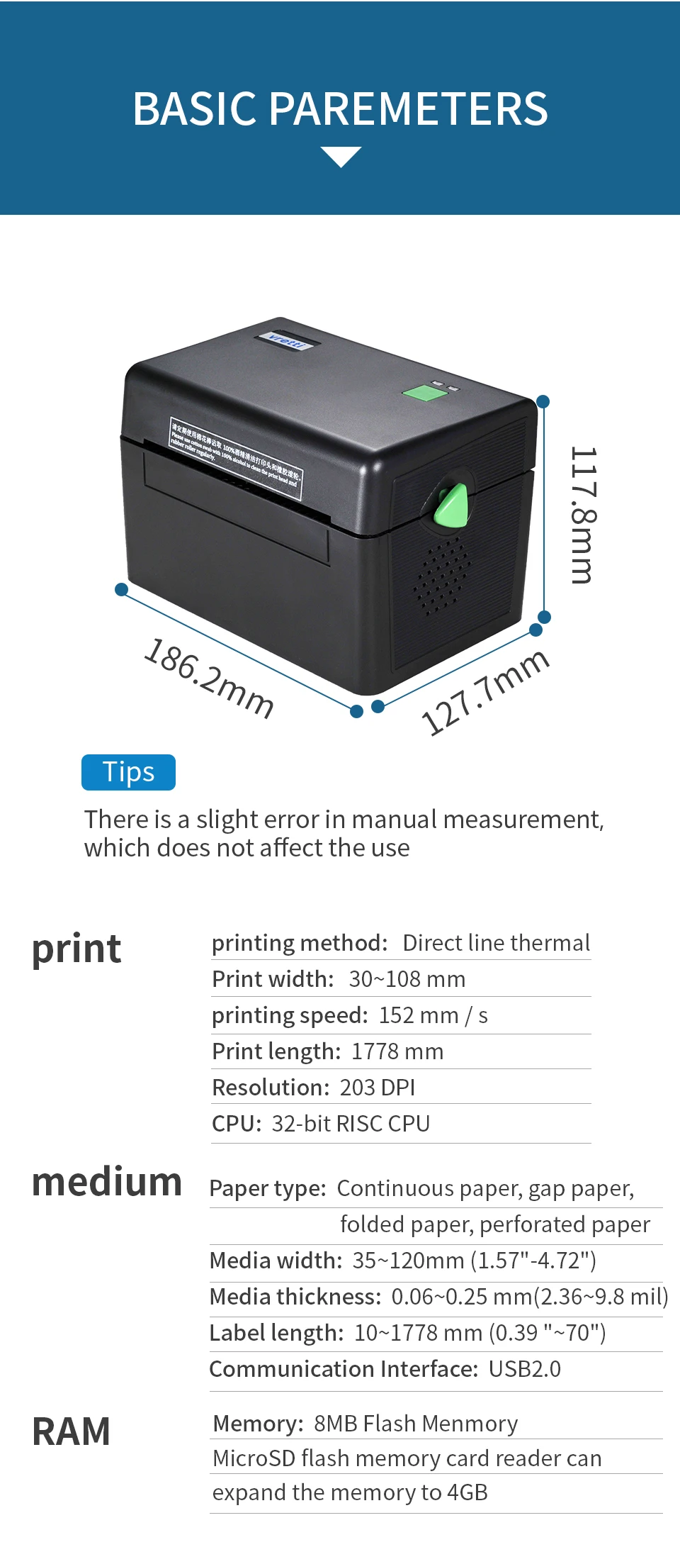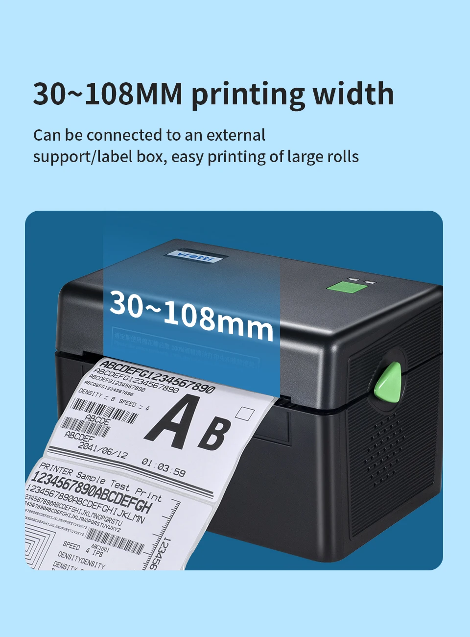 Этот настольный принтер этикеток будет принты на каких-либо этикеток шириной от 1 "(25,4 мм) До 4,5"(115 мм), макс