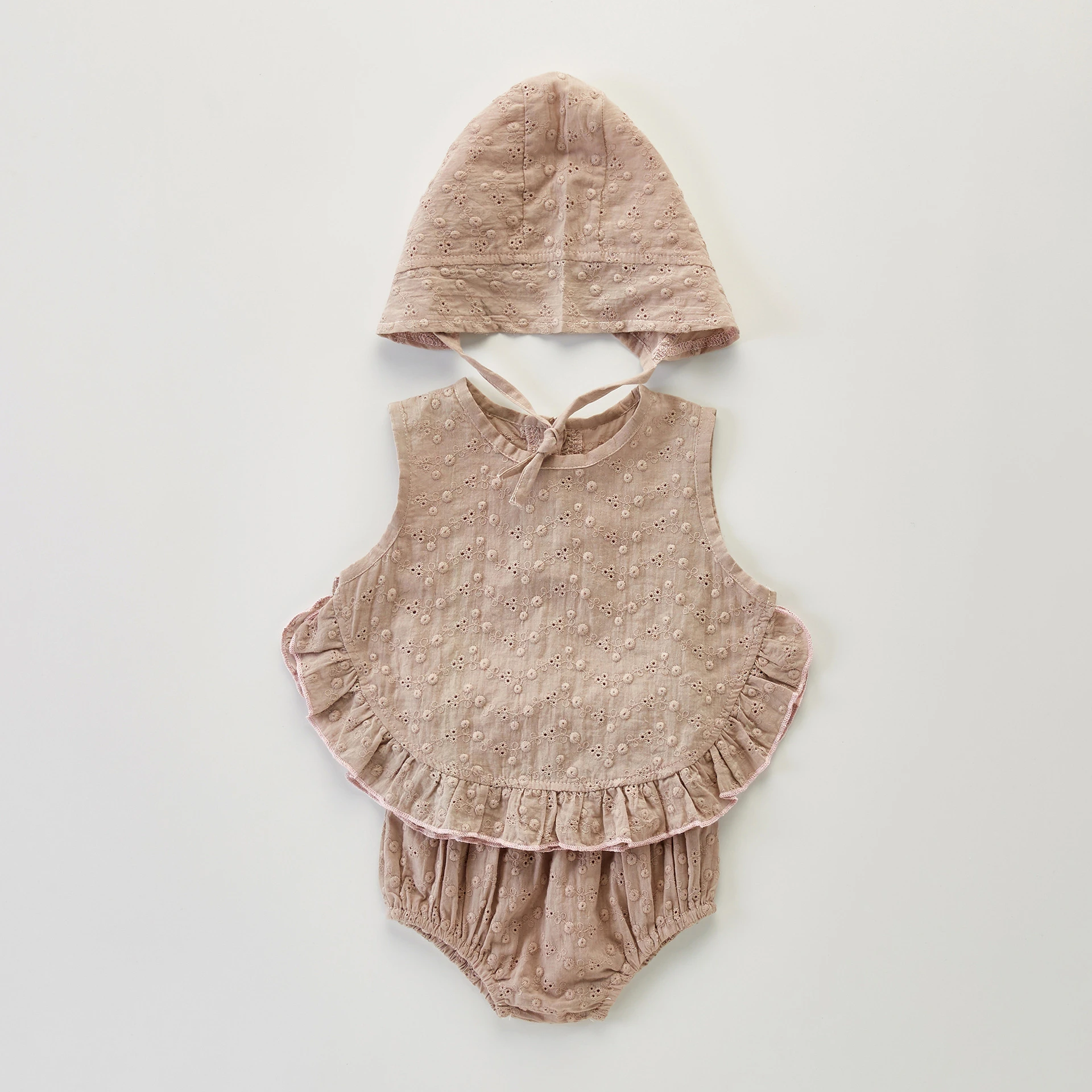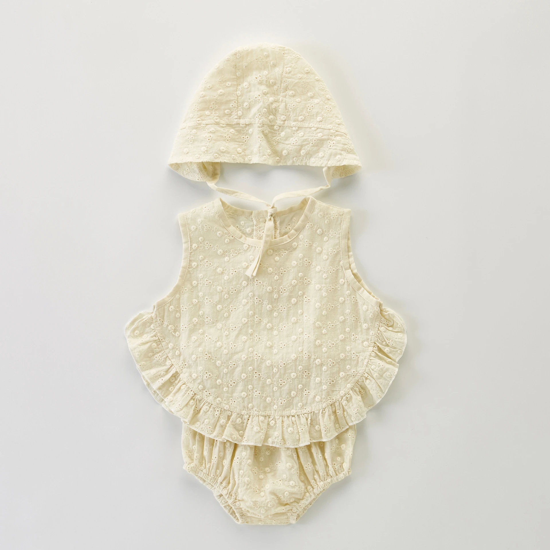Комплект мягкой дышащей кружевной одежды для маленьких девочек, летний Повседневный жилет без рукавов с оборками + шаровары + шапочка, комплект одежды из 3 предметов для маленьких девочек 0-2 лет