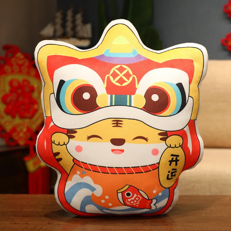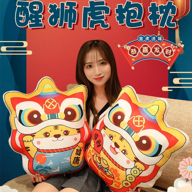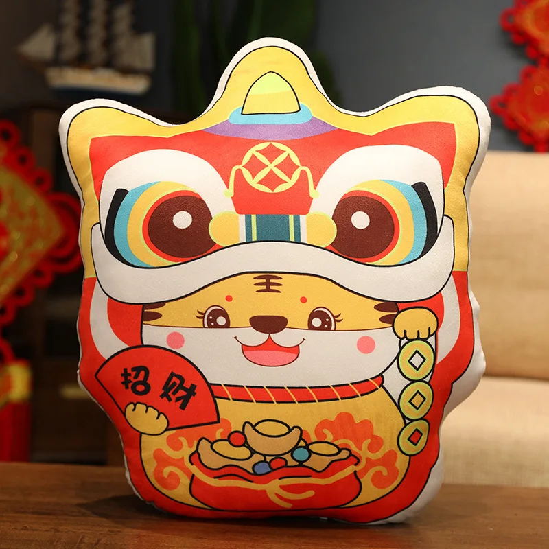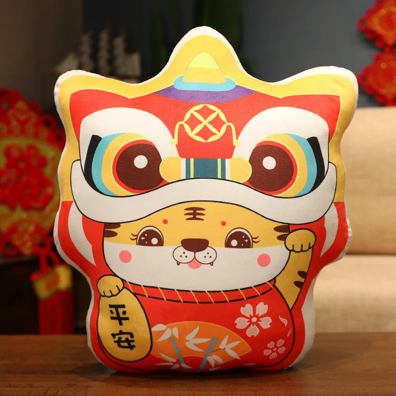 Плюшевая игрушка мягкая кукла мультяшное животное 2022 новый год Китайский зодиа Тигр стать танцующим львом Подушка для офиса отдых сон 1 шт
