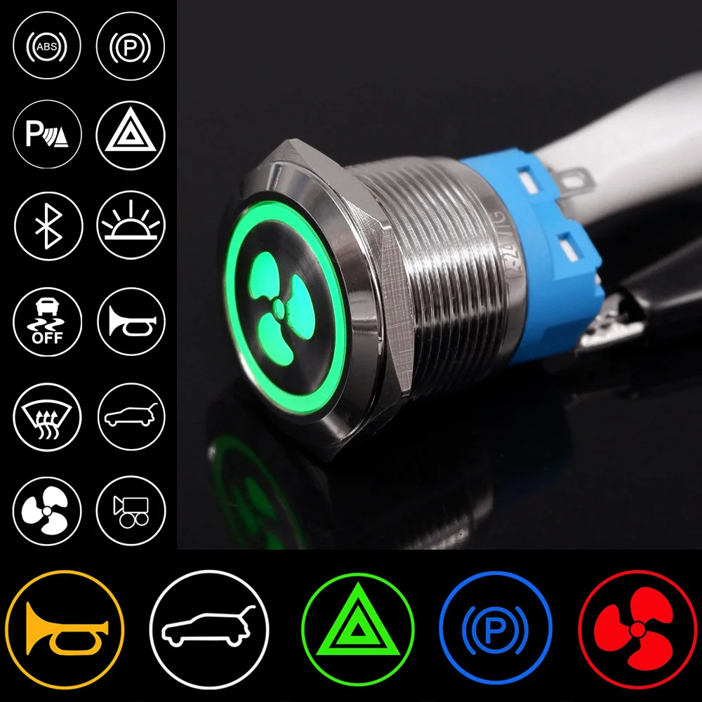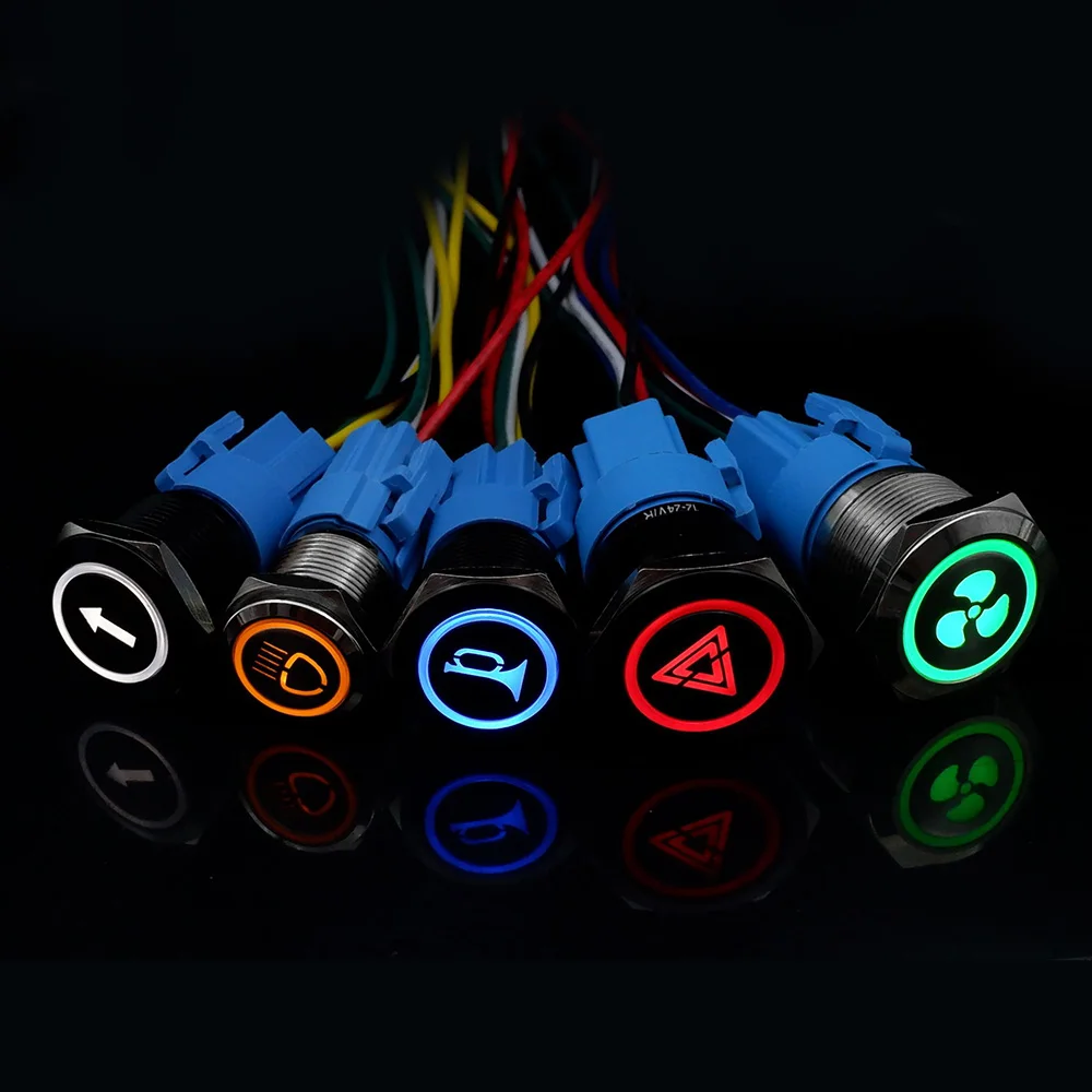 Головка нашего выключателя металлическая, и она имеет очень красивый металлический блеск. И светодиодный, яркий и равномерный. Другие переключатели продавца, головка заменена пластиковыми листами. Это не хорошо выглядит, и яркость не высокая.