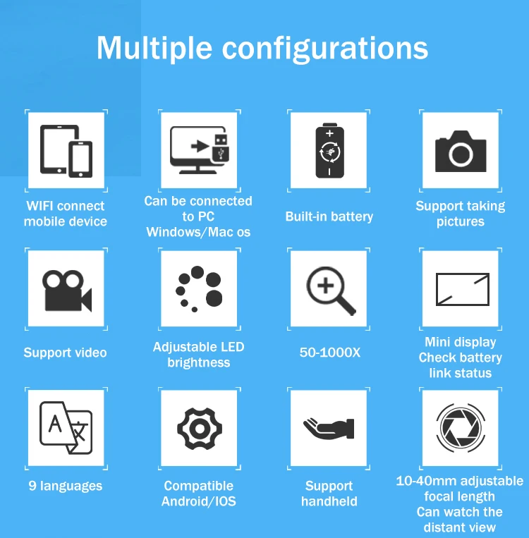 Диапазон фокусировки: 10 ~ 40 мм (можно смотреть на дальний обзор)