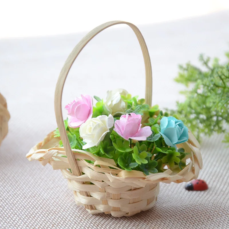 Мини-корзины с ручками из ротанга корзины с цветами для деревенских свадебных столов украшения для самодельного изготовления принадлежностей