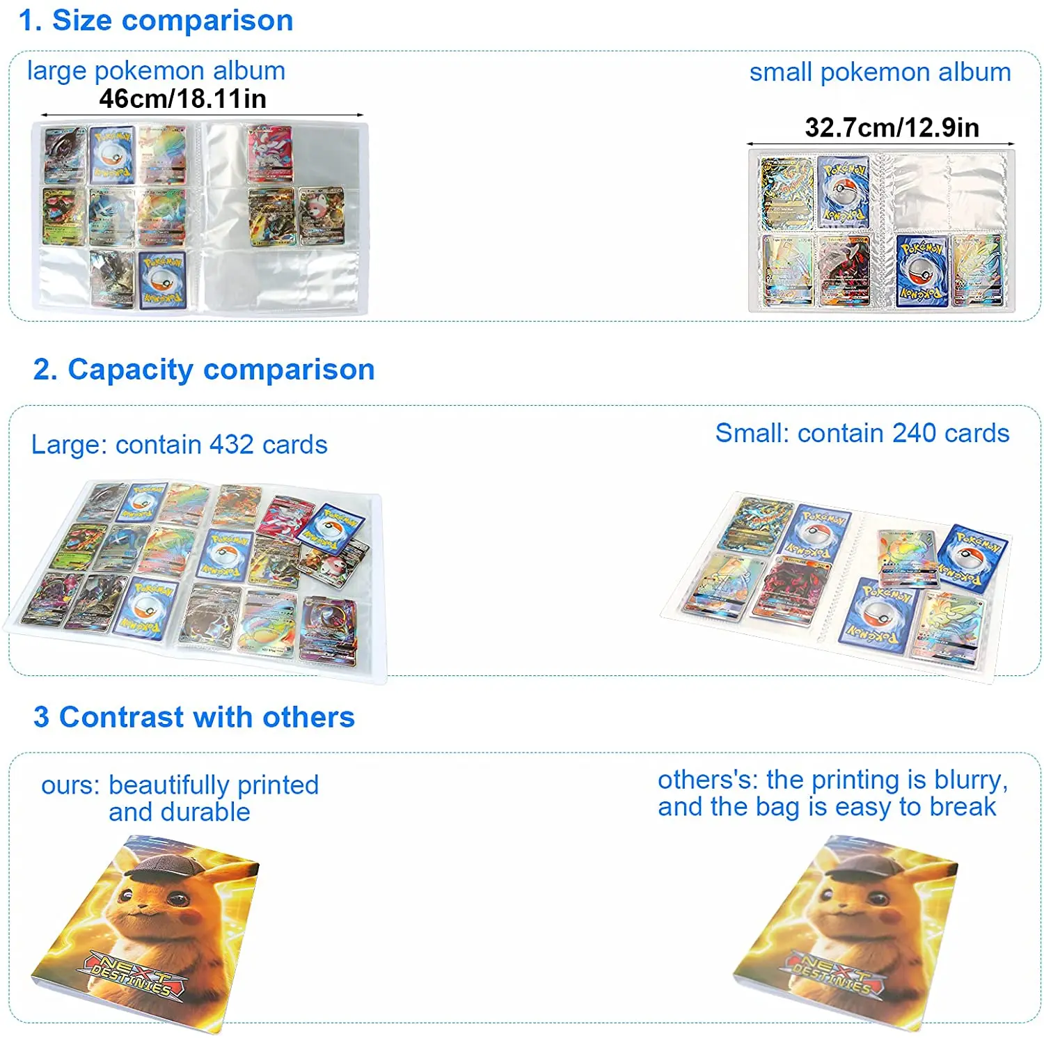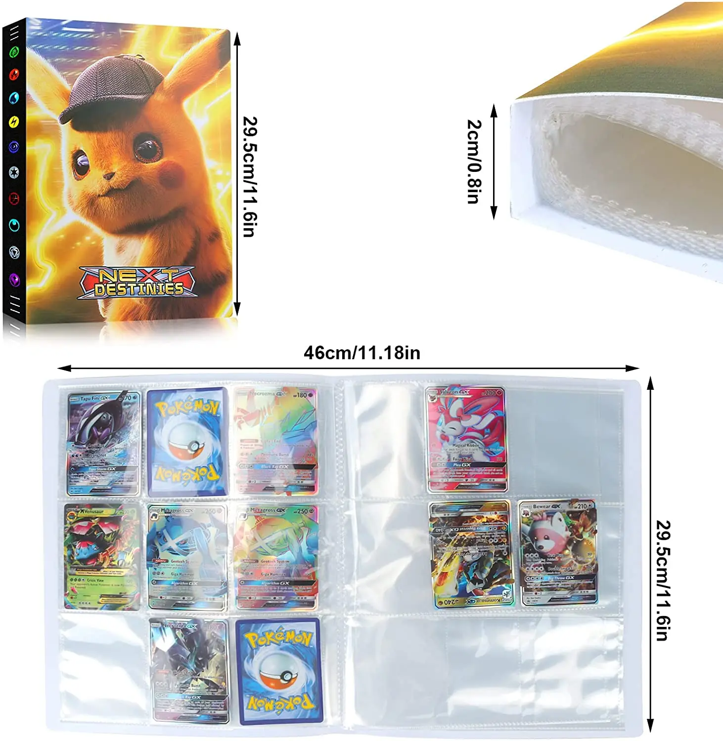 Характеристика: Название: коллекционер карт Pokemon. Есть 24 страницы, 9 карманов на странице. Может вмещать 432 карты (две стороны, отправка без карт) Спецификация: Модель: Pikachu Bluesky Размер крышки: прибл. 47*30 см Размер кармана: около 7x9 см Материал: ПВХ посылка включает в себя: 1 альбом Pokemon только карты Pokemon альбом, без карт. Примечание: замеры сделаны вручную, поэтому возможны отклонения на 1-3 см. Из-за светильник экране монитора фактический цвет товар точно такой же, как и цвет изделия на фото может быть s светильник ly отличается из-за характеристик монитора компьютера.