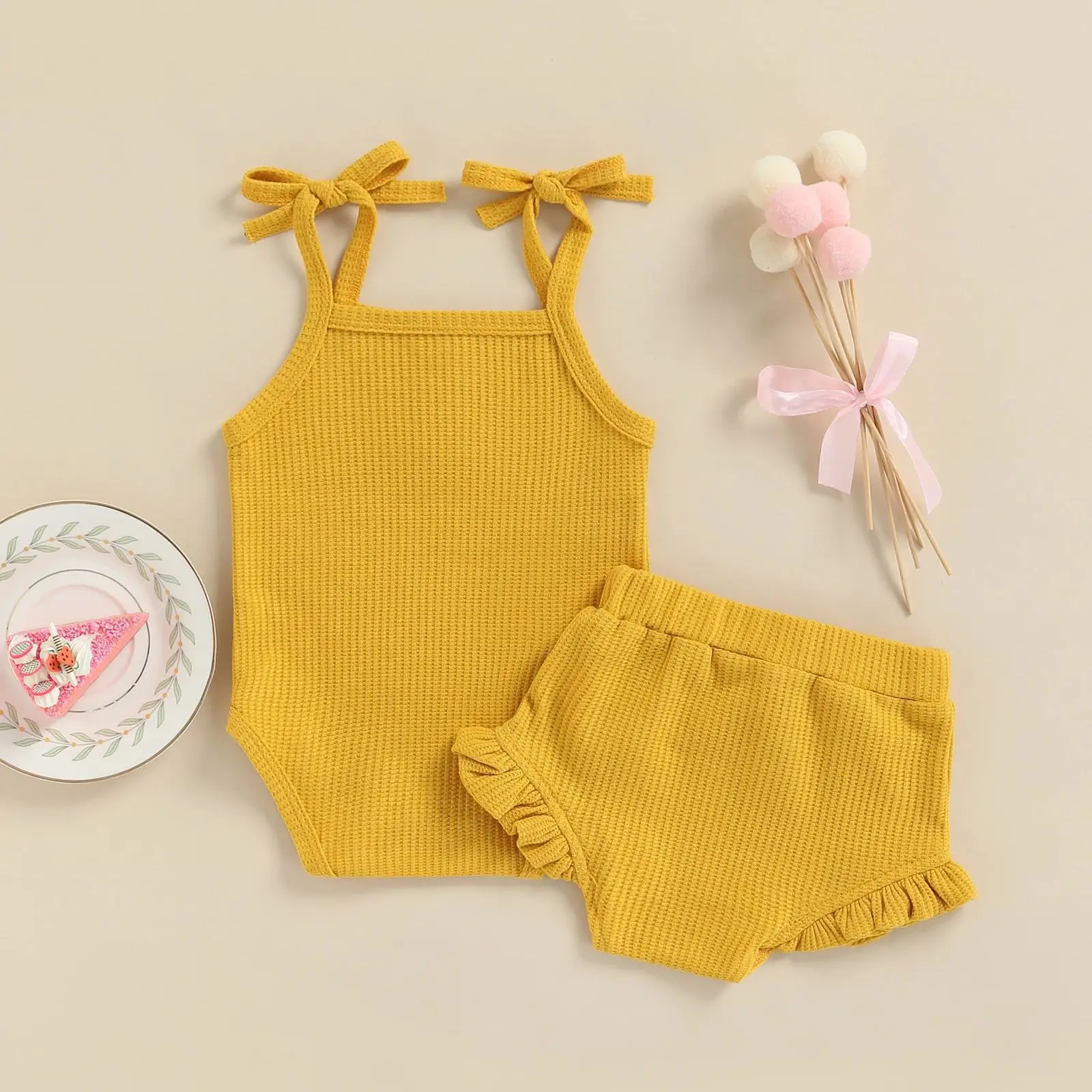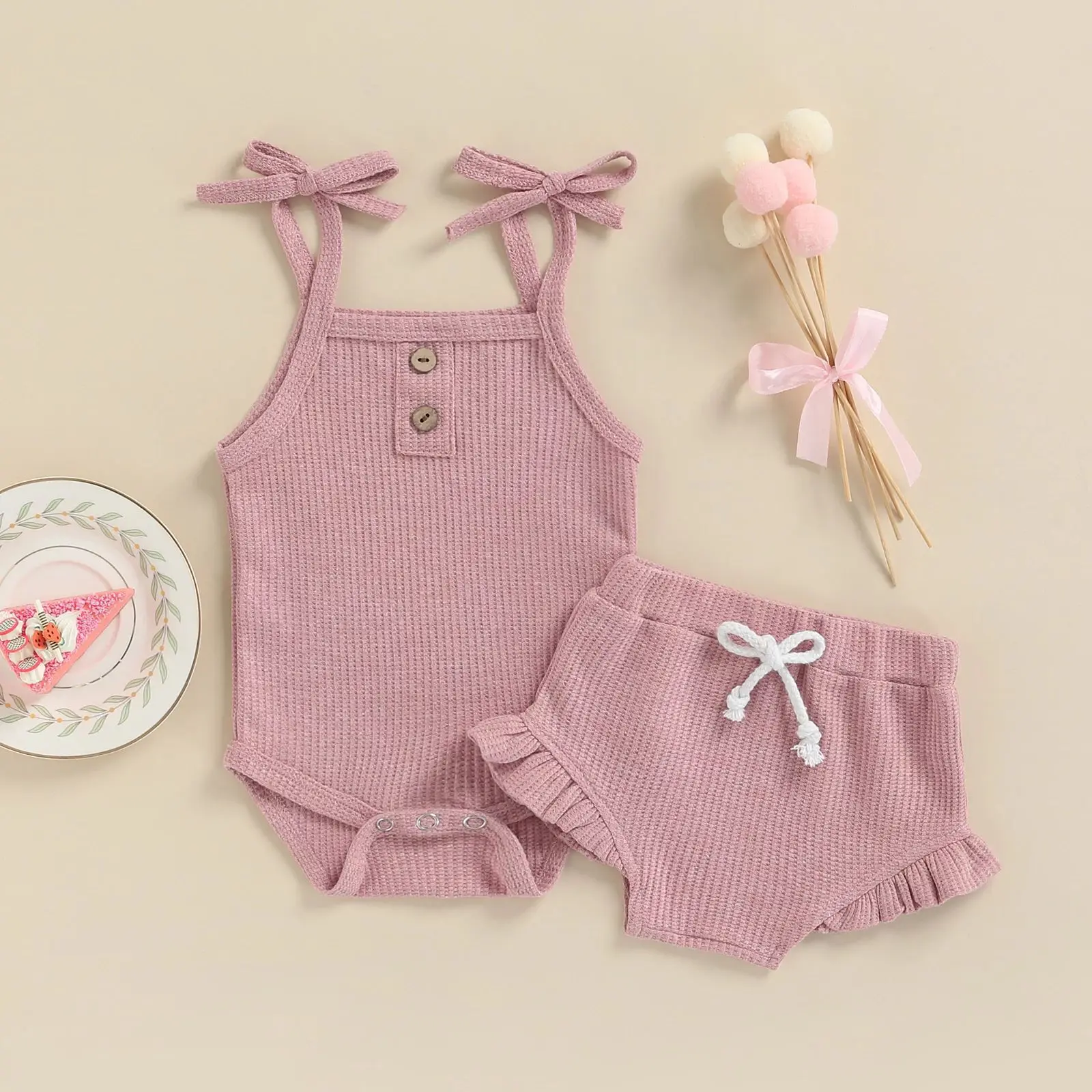 Одежда для маленьких девочек летний хлопковый Ромпер Для слинга + шорты из полипропилена милый комплект из 2 предметов для новорожденных