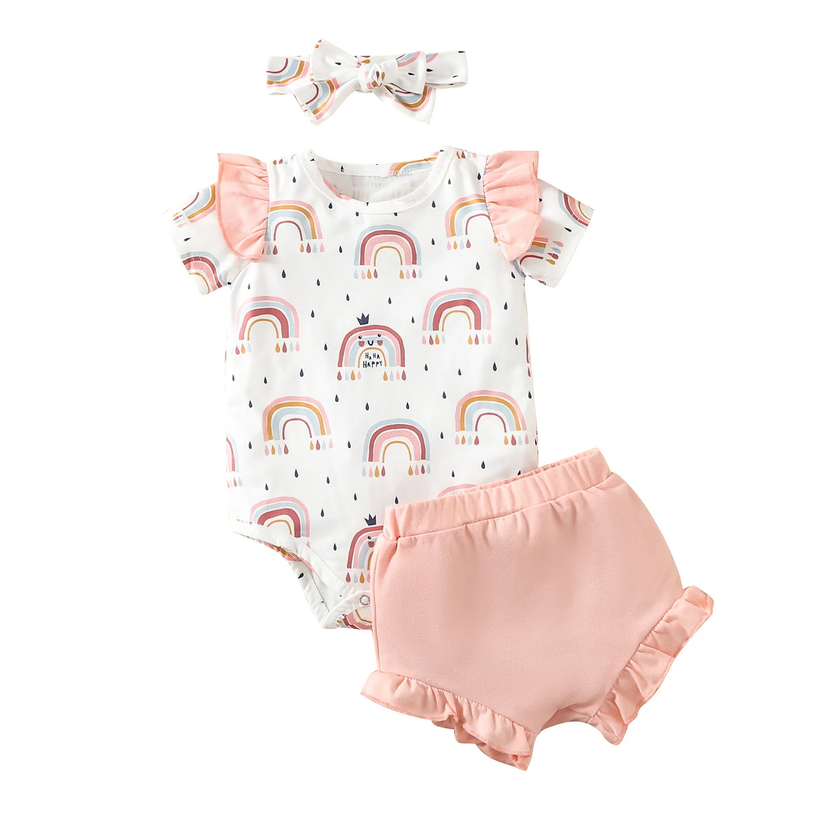 Одежда для маленьких девочек милое летнее платье с рисунком радуги; Детский комбинезончик + трусики на подгузник, комплект боди для новорожденного, для младенца принцесса комбинезон для детей от 0 до 24 месяцев