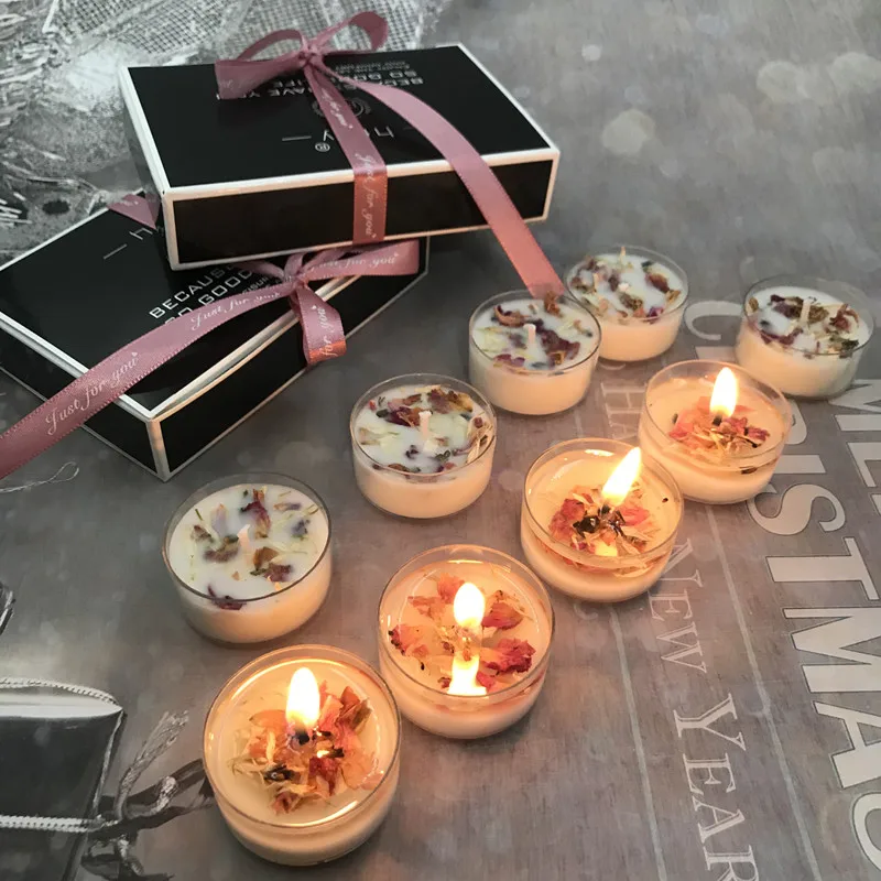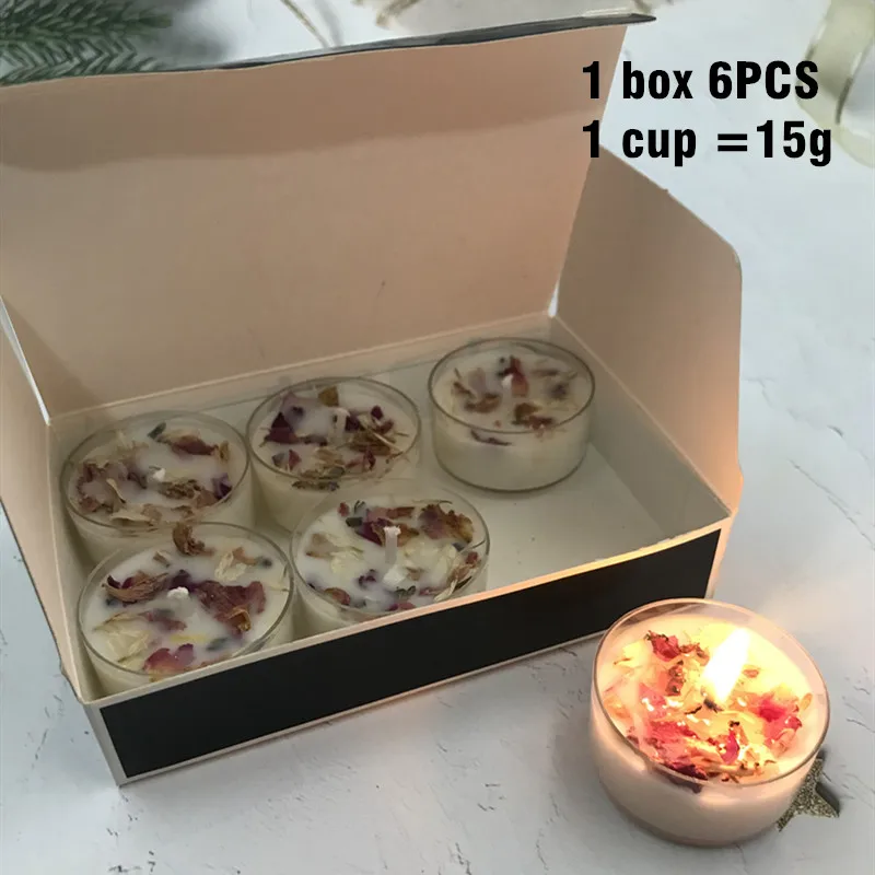 Свадебный набор Ароматических Свечей, 6 шт., натуральный лепесток розы, соевый воск, растительное эфирное масло, подарок на день рождения, вечерние, Рождество