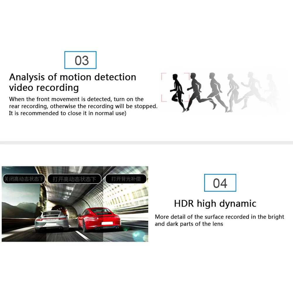 1080P Dash Cam 4 дюйма Дисплей Двойной объектив Видеорегистраторы для автомобилей Широкий формат приборной панели Камера с зеркалом заднего вида Камера