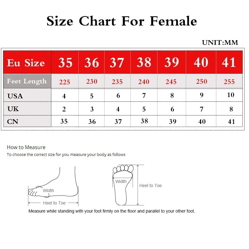 Size information : All size is US size,if you don't sure what your size,take a ruler to mesure the distance from your big toe to heel,then according the length to chose right size,if your foot is wide or fat ,please choose one size larger, if your foot is slim or narrow,please choose one size smaller, thank you.