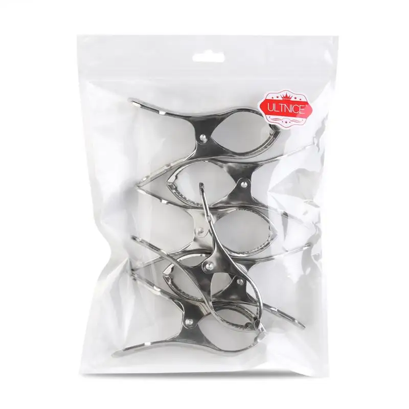 6 * ULTNICE Stainless Steel Large Beach Towel Clips Plastic Clothespins Clothes Pegs Clothes Hanger Clamp