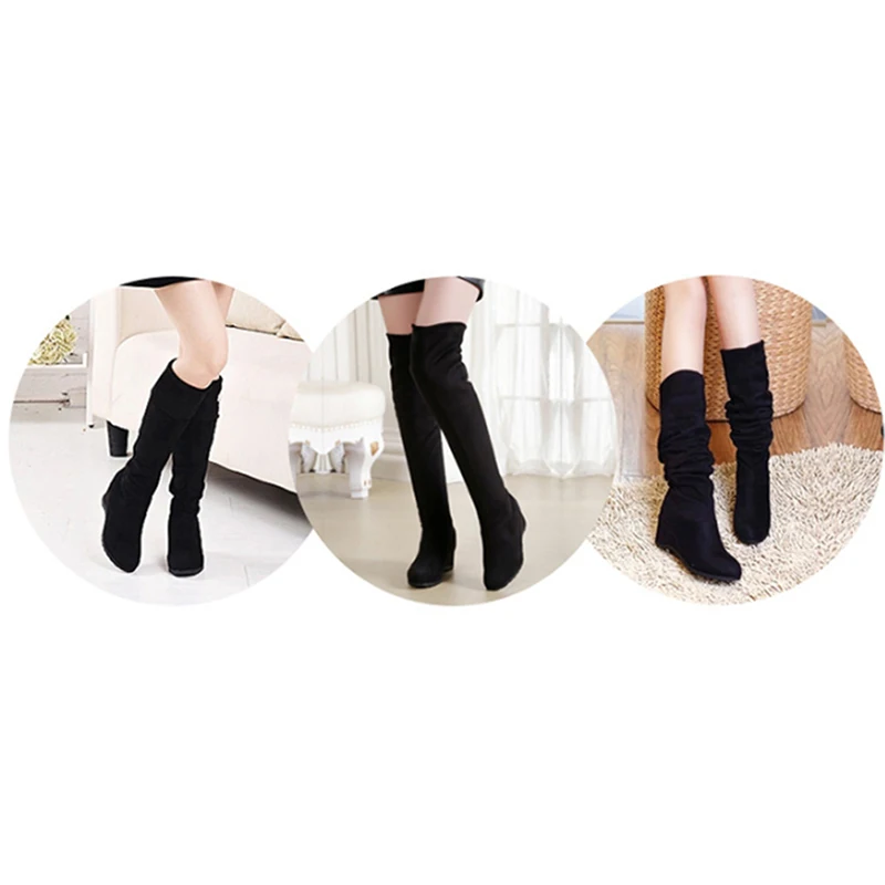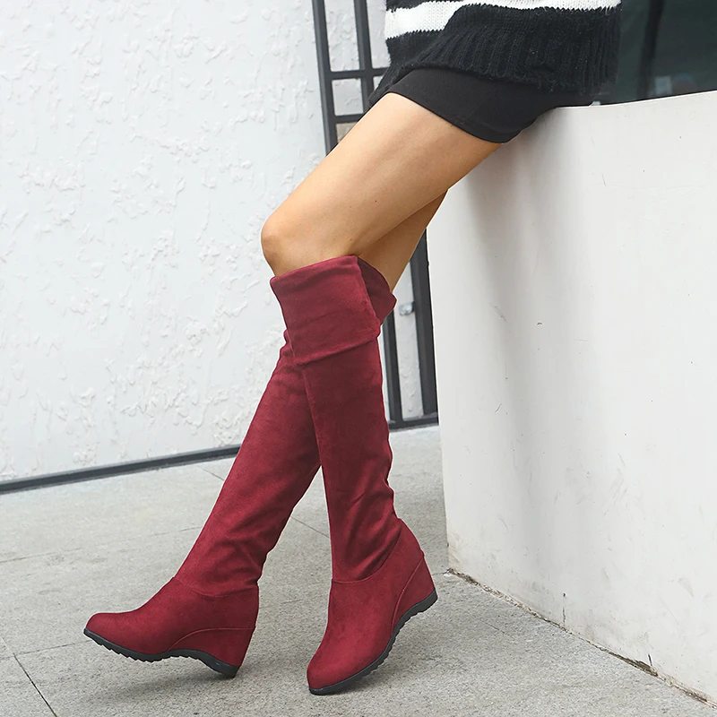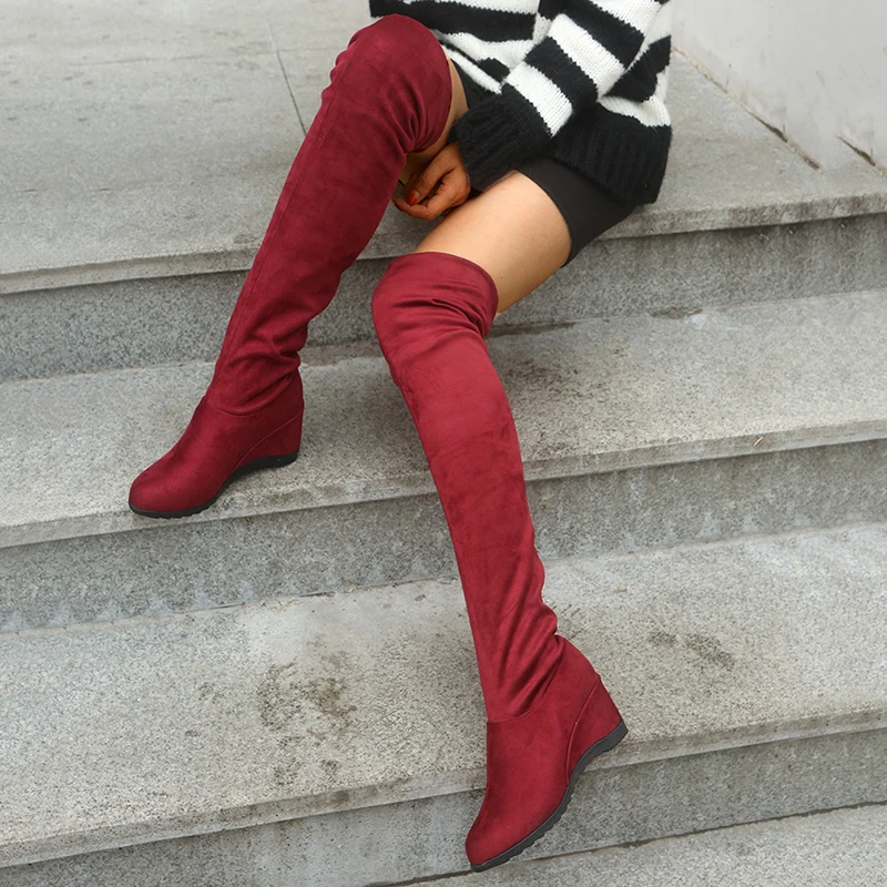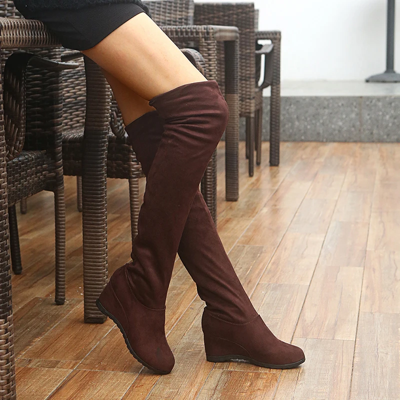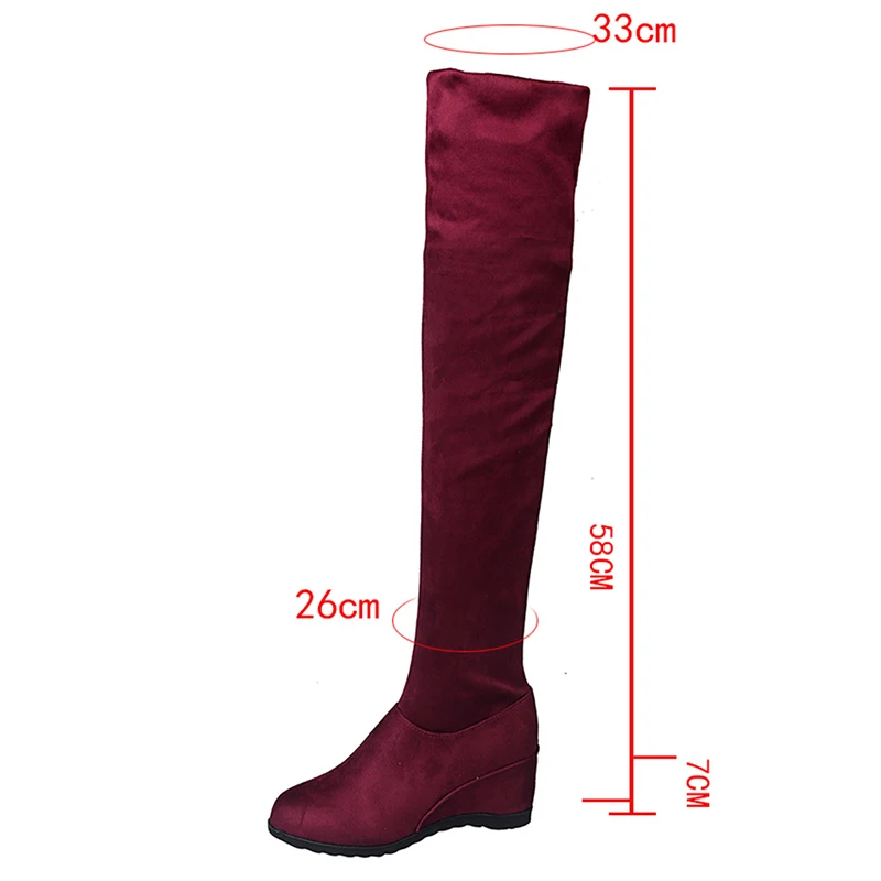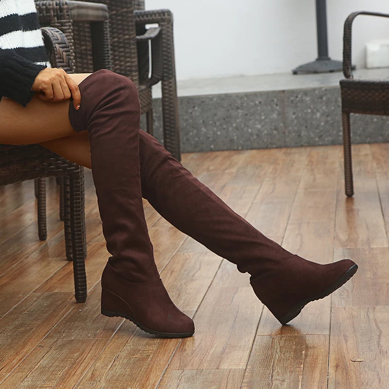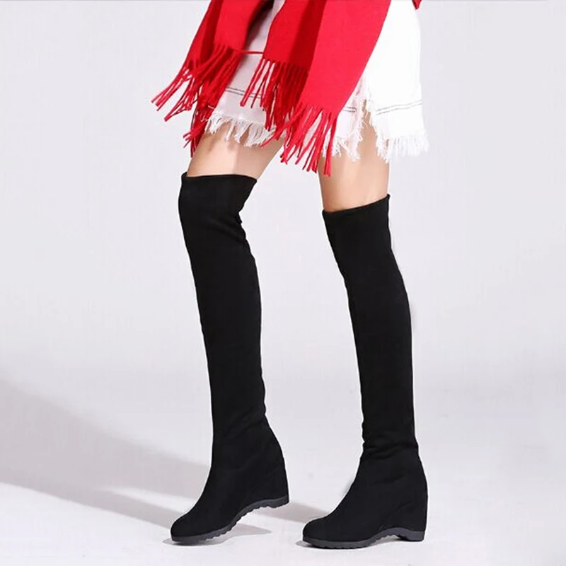 Пикантные облегающие эластичные ботфорты из флока; Женская обувь; Сезон осень-зима; Пикантные женские высокие сапоги до бедра на танкетке и высоком каблуке; Botas