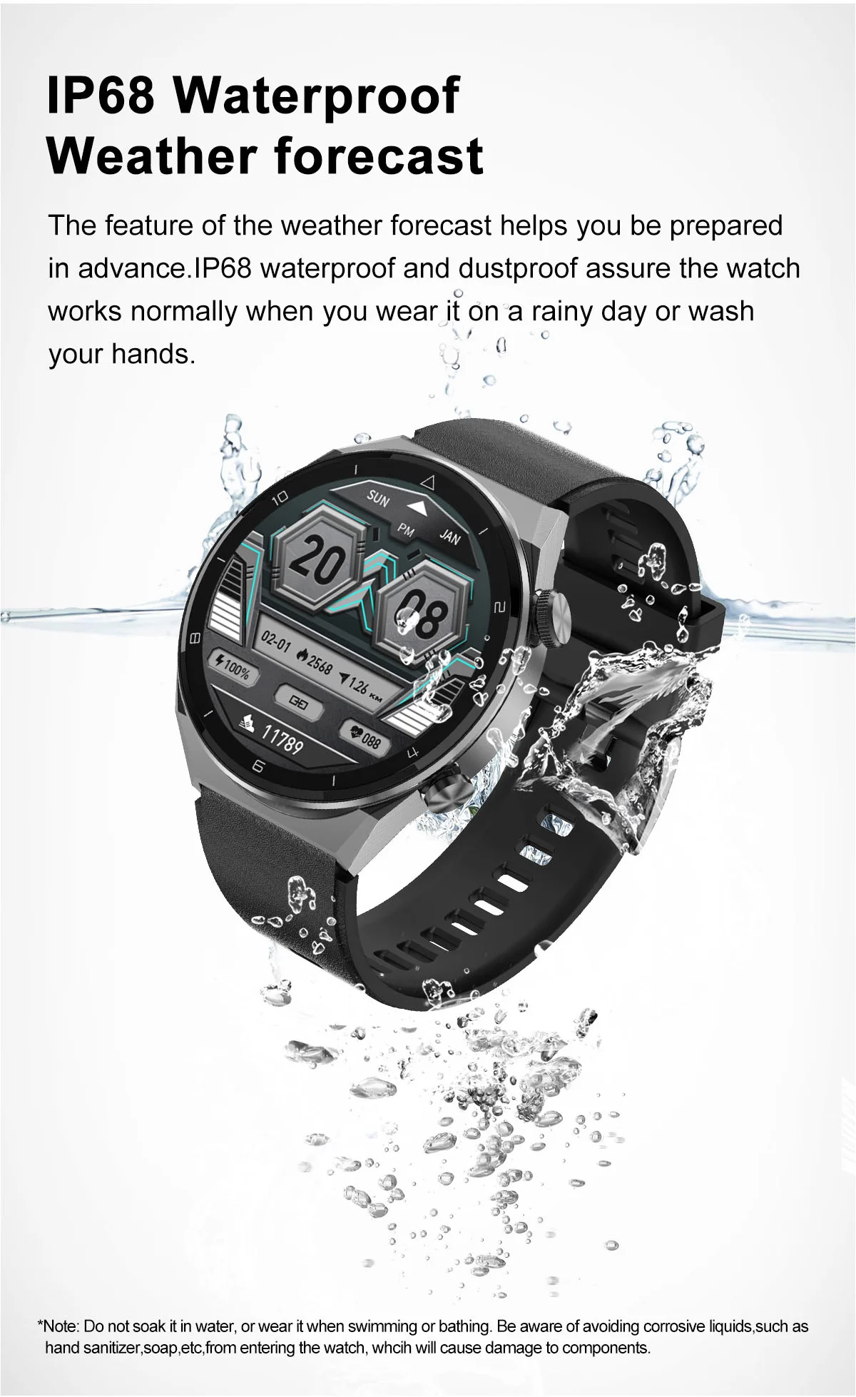 Уровень водонепроницаемости: IP68 (пожалуйста, не используйте его в глубоком/прохладном плавании и горячем душе)