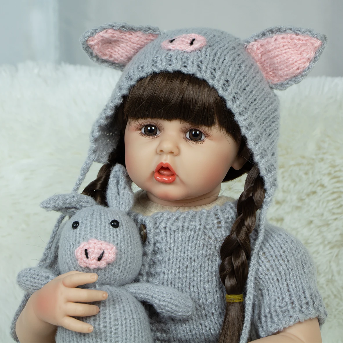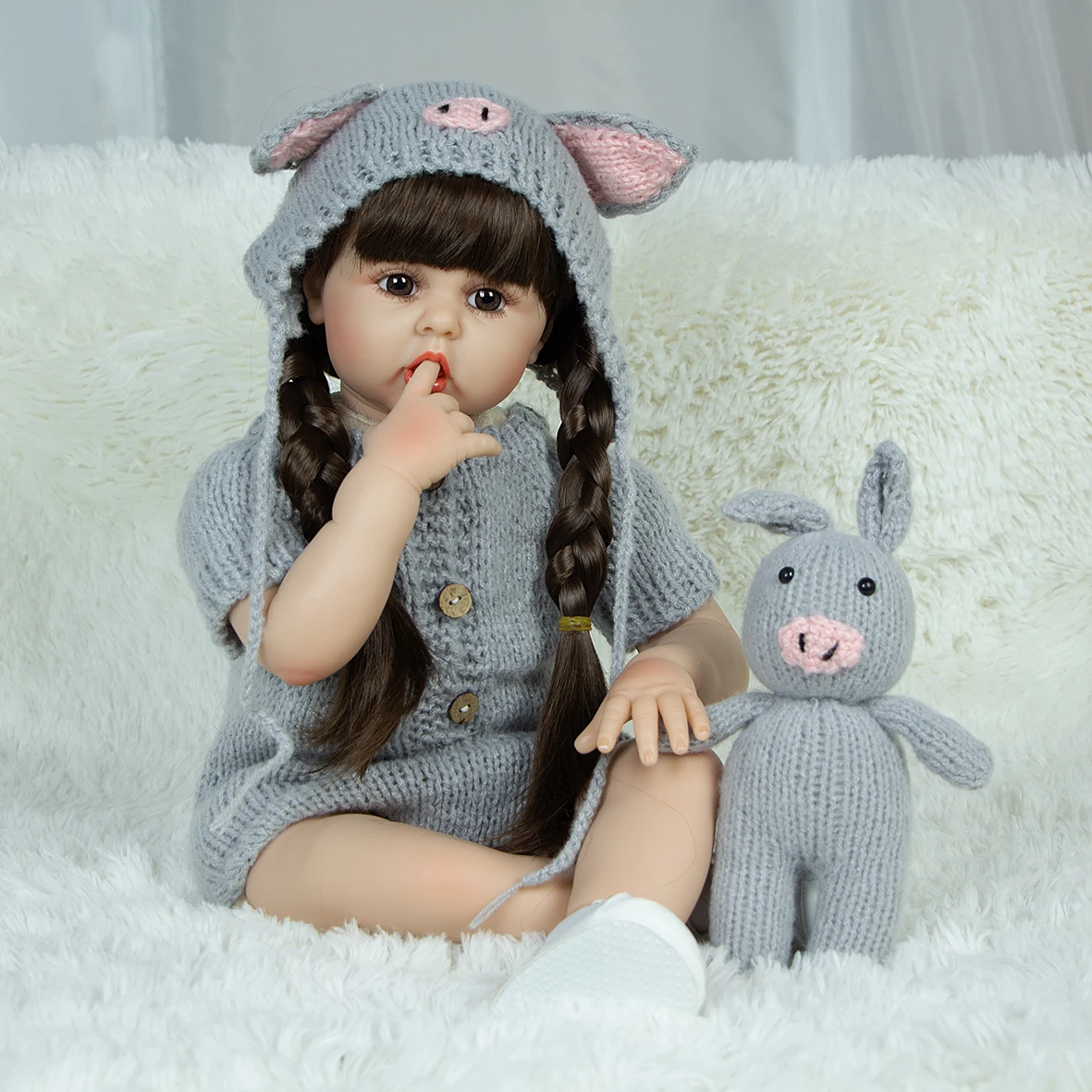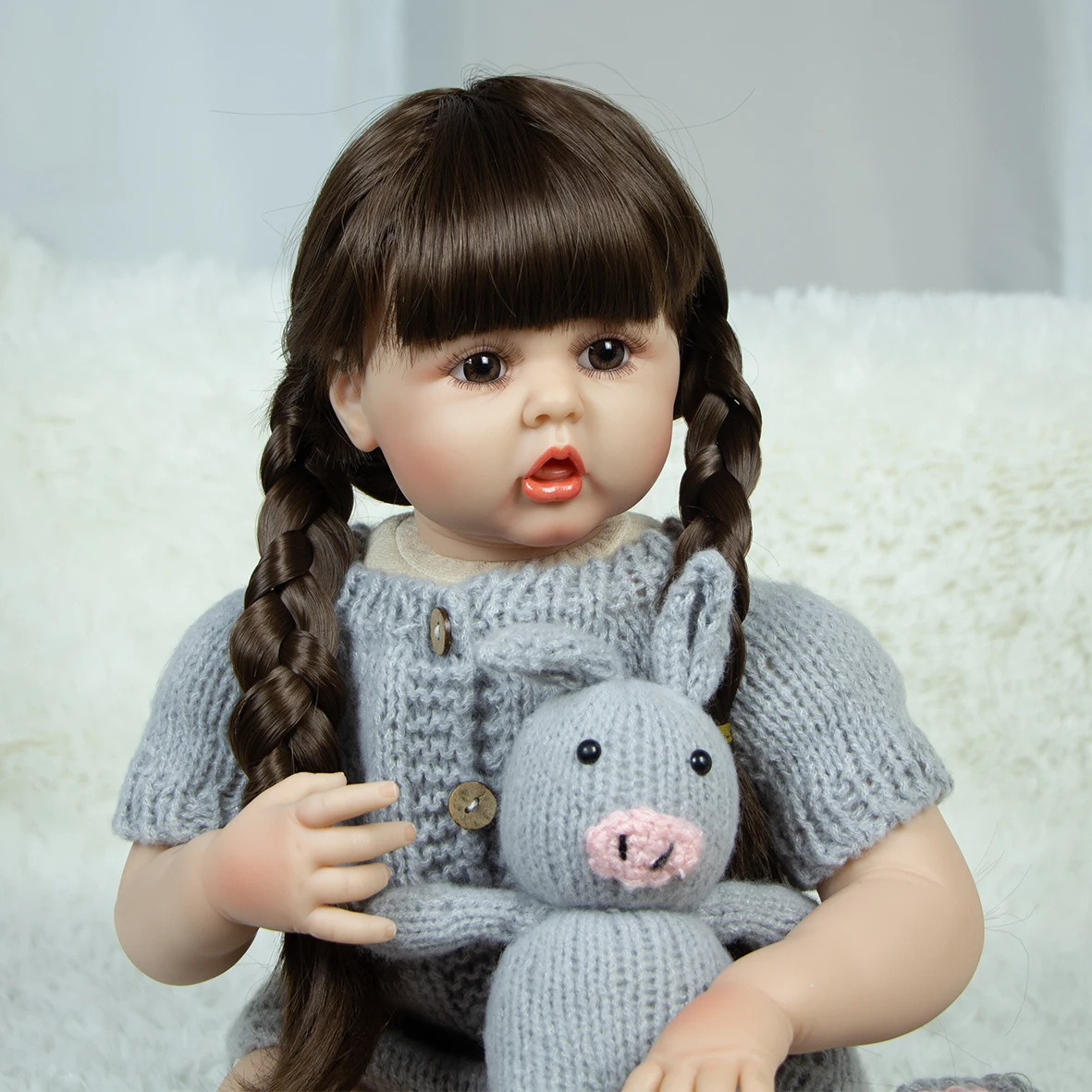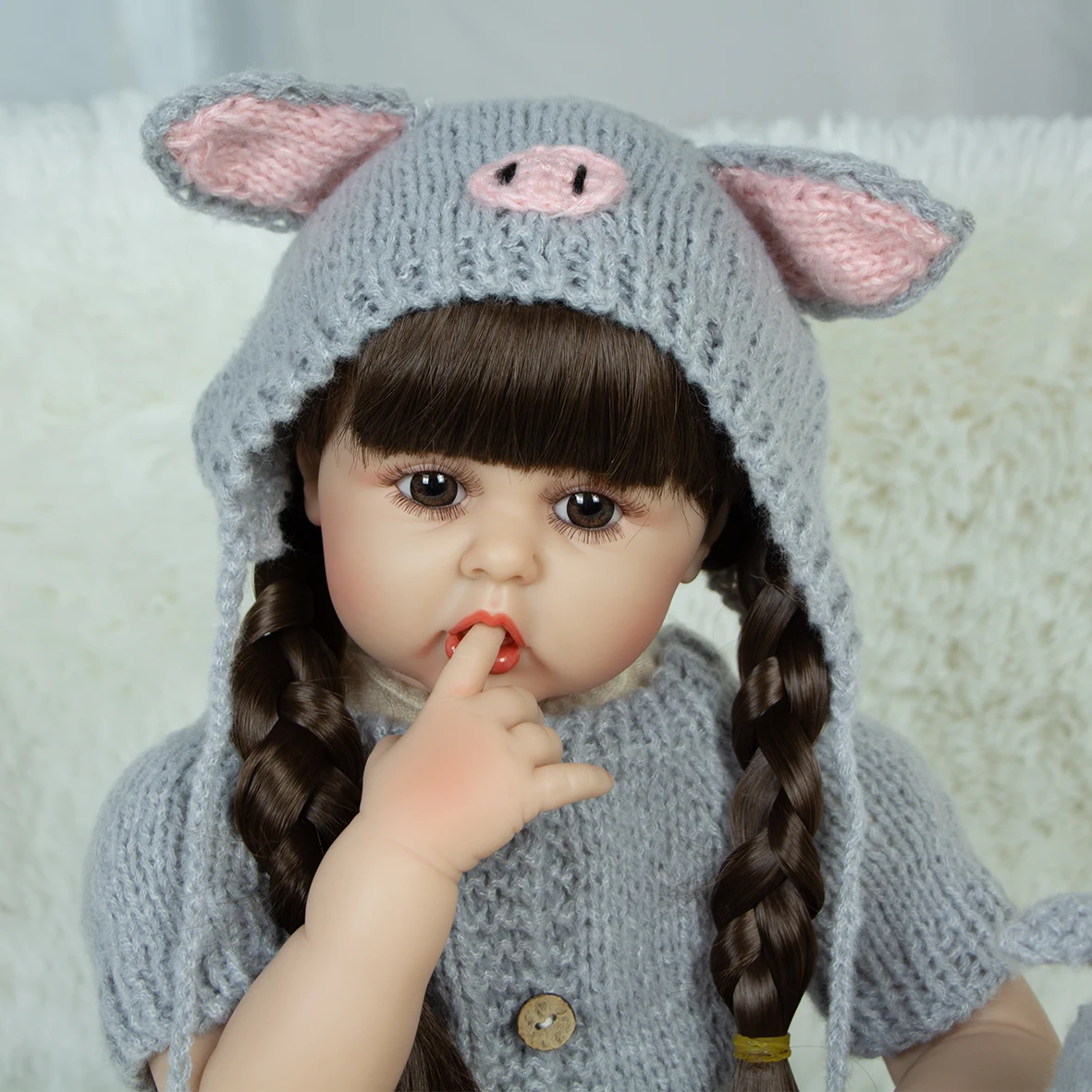 8)Structure:Head, 3/4 limbs are made of silicone vinyl. Safety production, non-toxic; doll limbs can be active, it can sit or lie,can not stand,speak or feed.