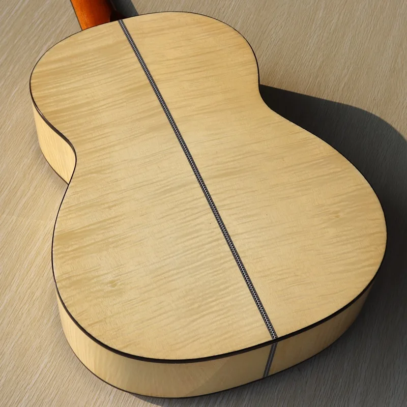Классическая гитара, 39 дюймов, натуральный цвет, 6 струн, пламя, клен, задний и боковой, полный размер, дизайн, глянцевая отделка, Классическая гитара