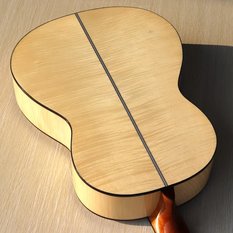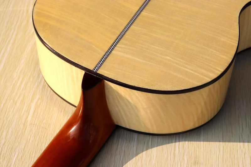 Размер: 39 дюймов Материал верха: ламинированная ель Задняя и боковая сторона: ламинированное пламя кленовое дерево Гриф: Техническая древесина Шея: красное дерево Головка машины: хромированная литая под давлением Отделка: глянцевый Frets: 19F Цвет: натуральный Уже с логотипом в головке гитары, пожалуйста, обратите внимание Марка: эта модель классического качества гитары настолько, что детали не так совершенны, могут иметь белый горошек и проблему с покрытием