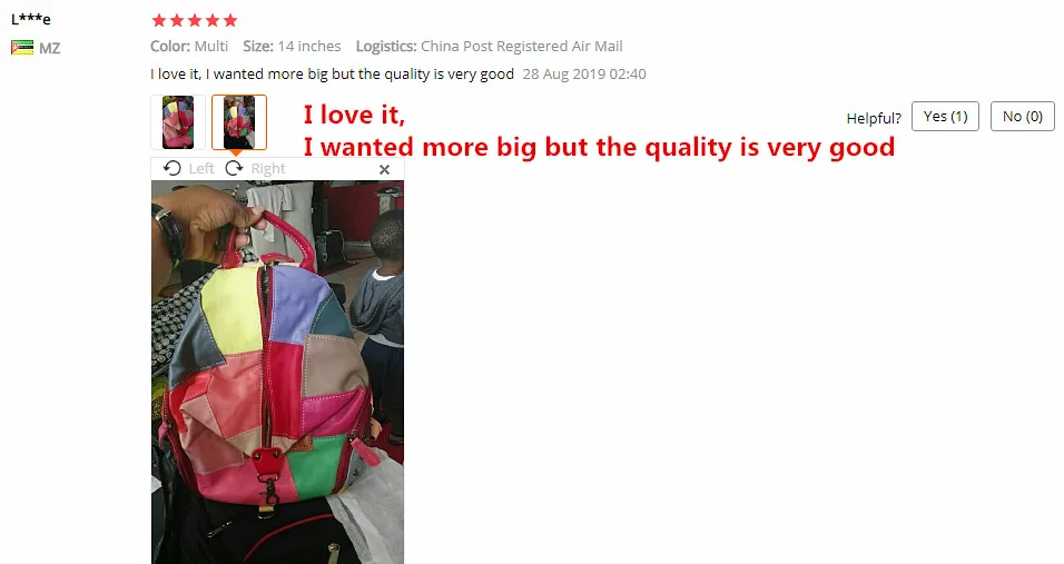 The backpack is made of disfferent pcs of real ship skins. so the color is not exactly the same as the picture. But the quality is good.