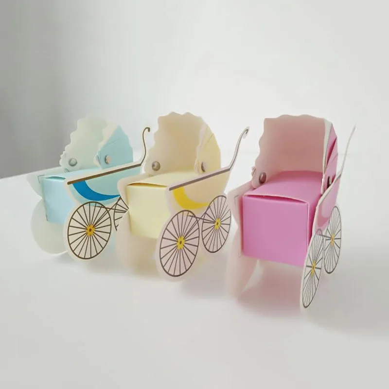 50 шт., 3 цвета, симпатичная детская коляска, Леденцовая коробка для детского душа, Свадебные вечерние сувениры, подарок коробка конфет, вечерние украшения на день рождения для детей