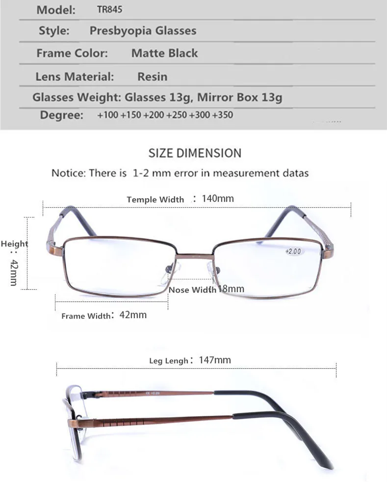 Материал: алюминиевые очки для чтения