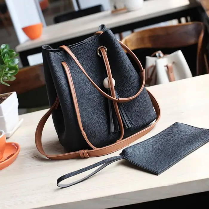 Модные женские сумки-мессенджеры с сумочкой-тоут, кожаная сумка с кисточкой и бусинами, женская сумка через плечо для покупок и путешествий, L