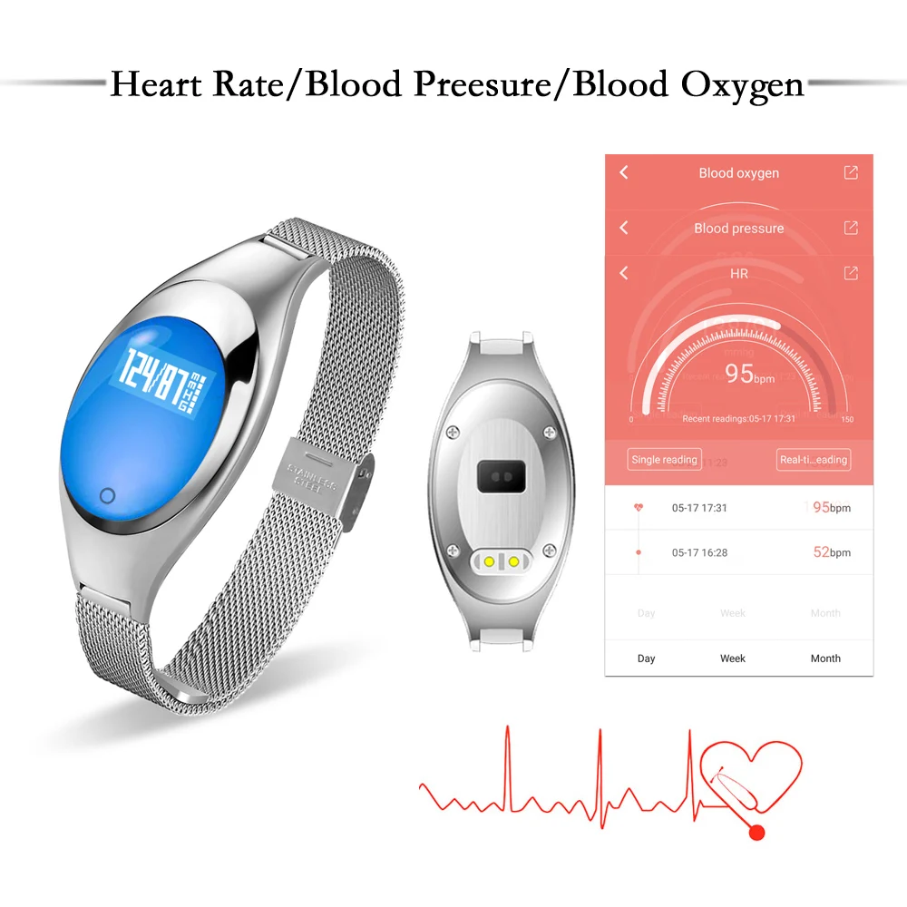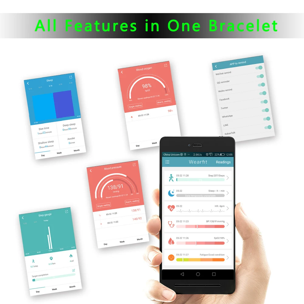 Этот модный смарт-браслет представляет собой сочетание кровяного давления и пульсометра, монитора кислорода в крови, подсчета шагов, измерения расстояния, управления потреблением калорий, управления сном, напоминания о звонках, часов, анти-потеря (положительное и отрицательное направление поиска), Вибрационный будильник и так далее.