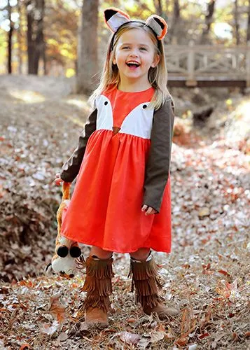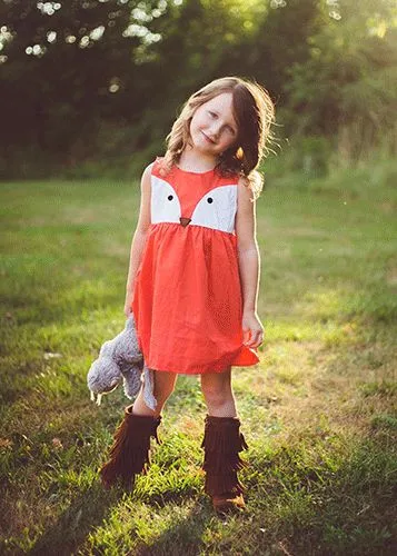 Новейшее модное платье с рисунком лисы для маленьких девочек!