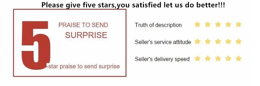 4. Если у вас есть какие-либо проблемы с нашим товаром или обслуживанием, пожалуйста, не стесняйтесь связаться с нами, прежде чем оставить отрицательный отзывы. Мы сделаем все возможное, чтобы решить проблему.