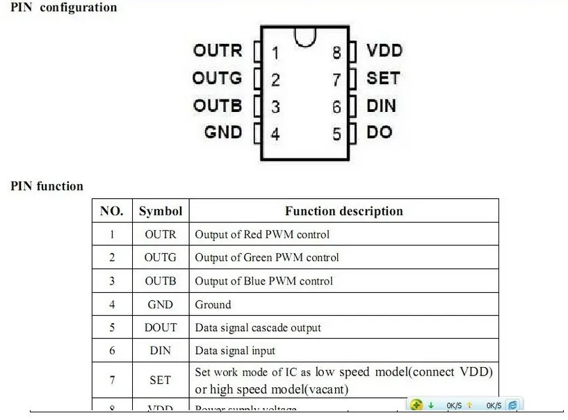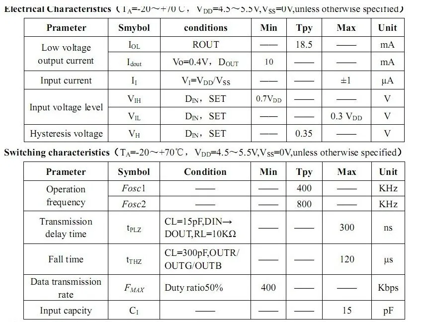 1. Напряжение питания: 5 В, привод одного светодиода, постоянный ток (18.5ма) Выход: