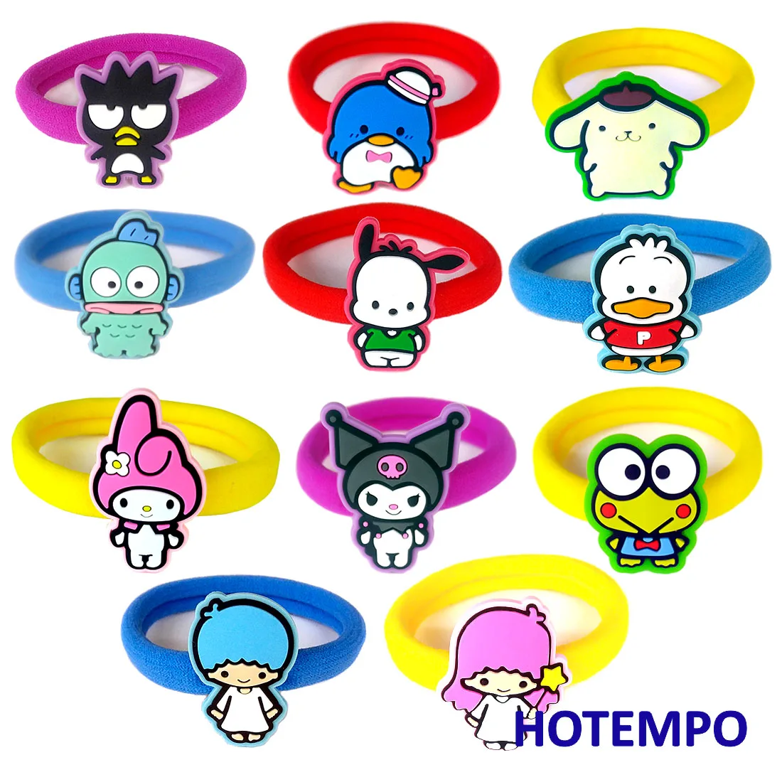 Kuromi, которая проигрывает мелодии из ahirunopekkle Pochacco Keroppi помпоном пурина Bad Badtz Мару модными принтами XO hangyodon TuxedoSam littletwinstars Lala Kiki детство Kawaii резинки для волос; Детский ансамбль; Для детей подарок