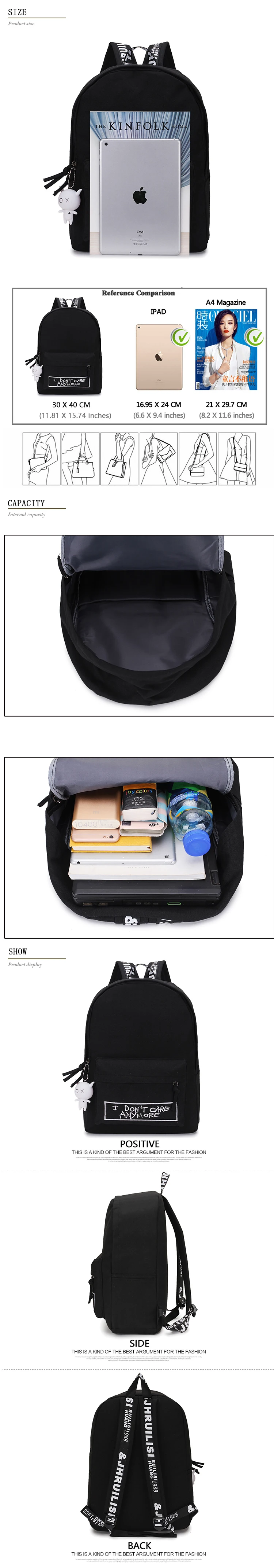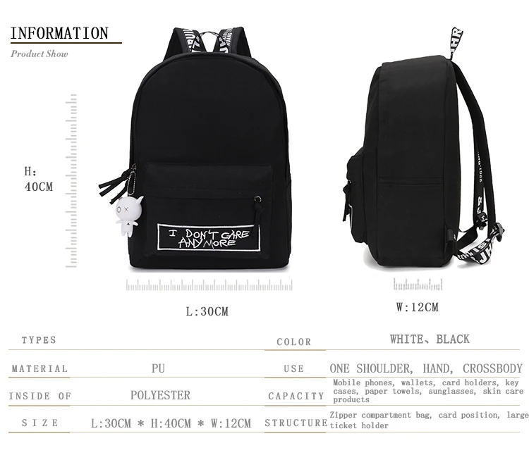 Поскольку многие люди просили, мы решили сопоставить две цепочки для ключей Пакет включает: 1 * рюкзак + 2 * брелок (1 черный, 1 белый) Tamaño: 40 * 30 * 12 cm Recomendado para los grados 5-12 Preguntas y respuestas del comprador ¿Para el trabajo escolar? ---------SI ¿Ajustar cuaderno A4? ----SI Laptop Fit? ------- SI ¿Para caminar? --------- SÍ ¿Es impermeable? --------SI Если хотите, добавьте список желаний или добавьте в корзину. Сделать его проще для вас, чтобы найти его