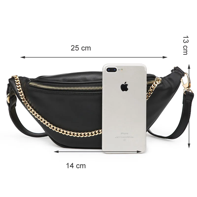 Женская поясная сумка Annmouler, черная поясная сумка из искусственной кожи с цепочкой, большая многонациональная Дамская нагрудная сумка