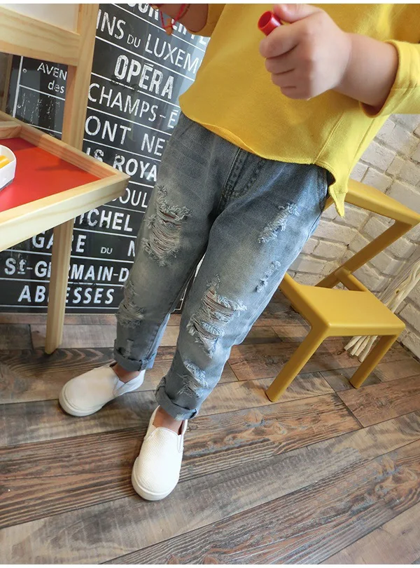 Осенние детские штаны джинсовые для мальчиков джинсы маленьких девочек модные