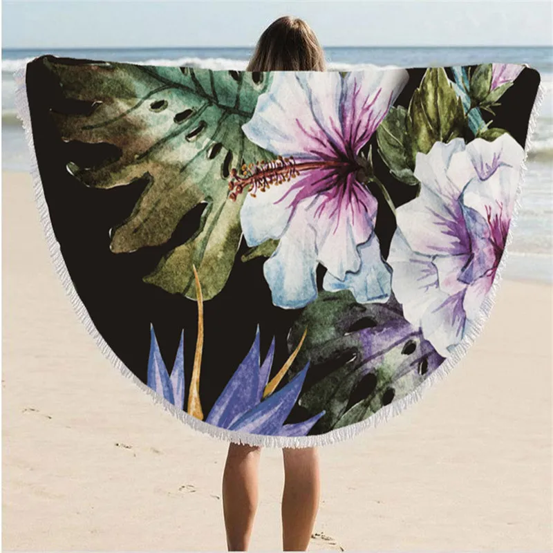 100% хлопок, розовый цветок гибискуса, большое круглое пляжное полотенце, коврик для йоги, Солнцезащитная шаль, накидка, юбка с кисточками, большой размер 59 ''526g YA01