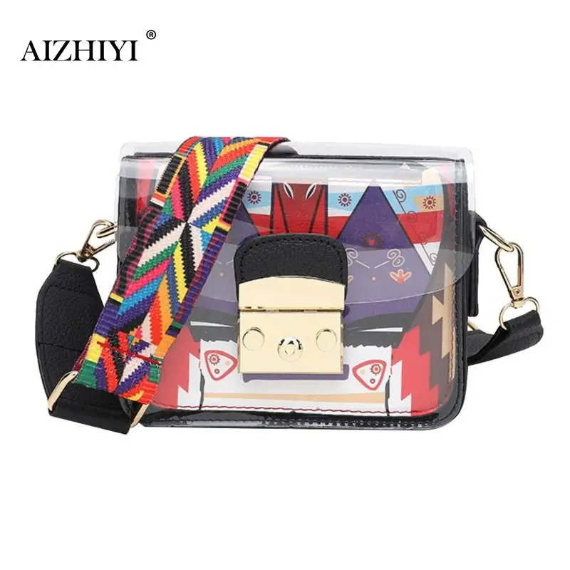 Модная женская сумка через плечо с широким ремешком, летняя забавная мини прозрачная сумка, клатч